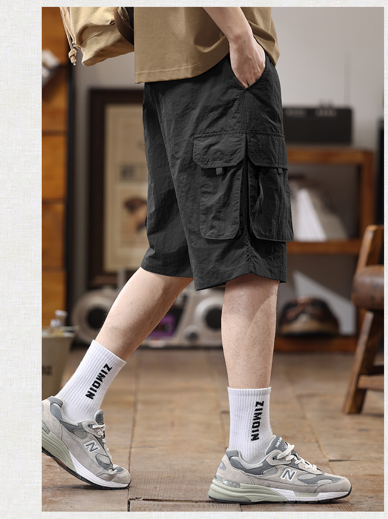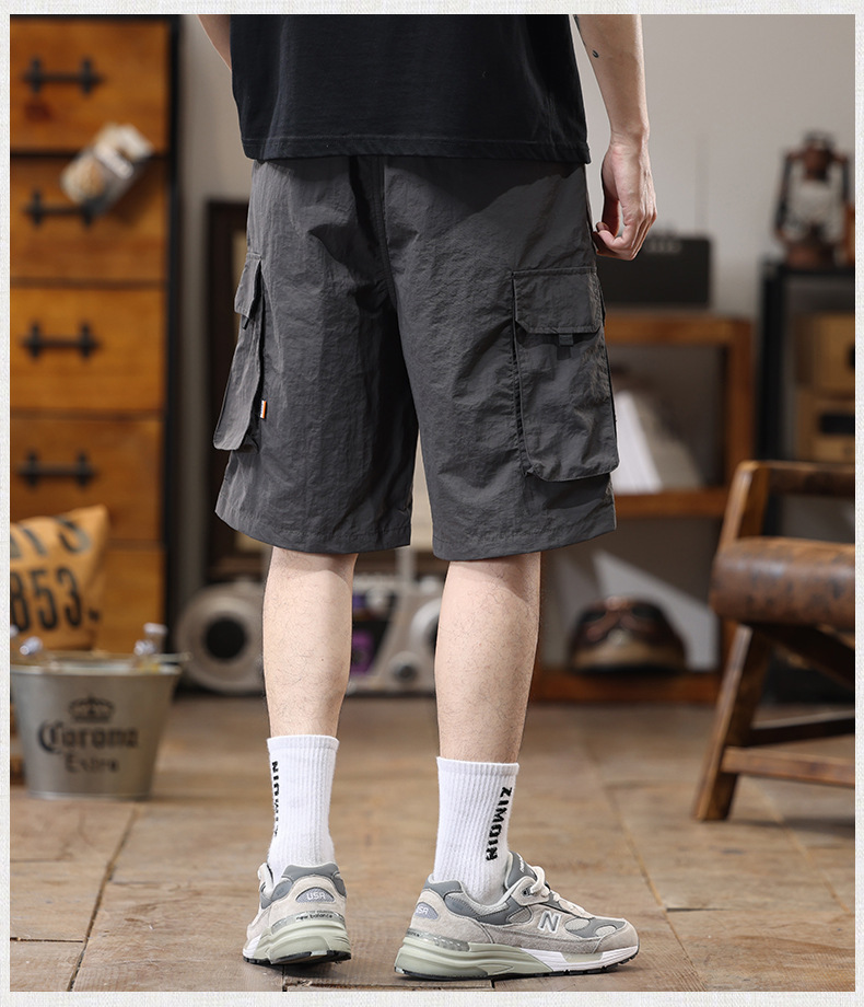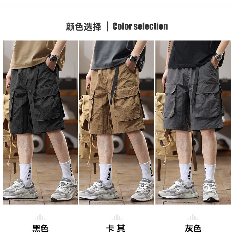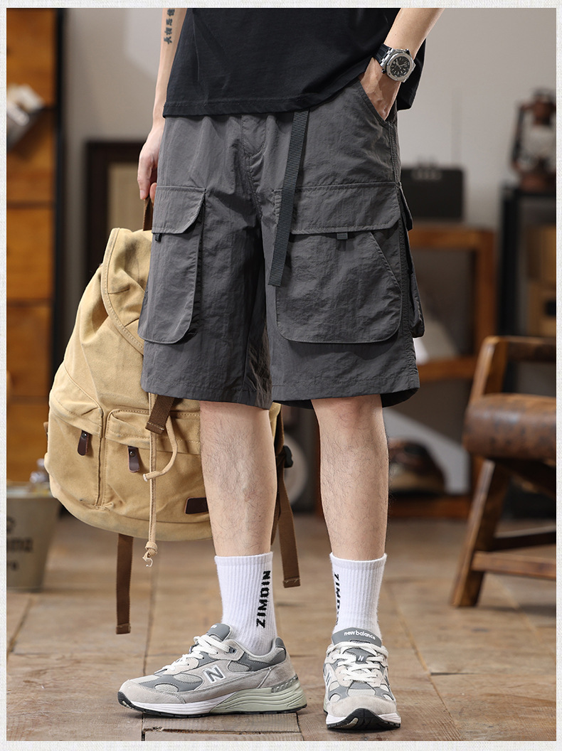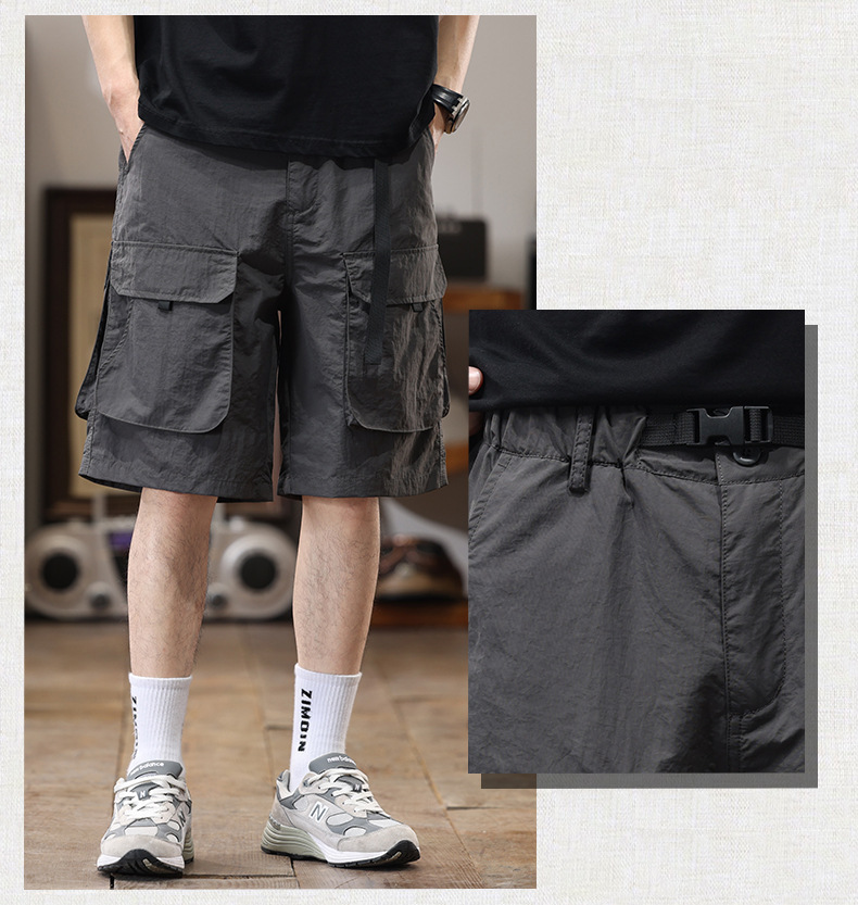 夏季新款美式潮流户外工装短裤宽松大码多口袋男士薄款五分裤灰色