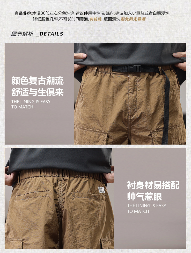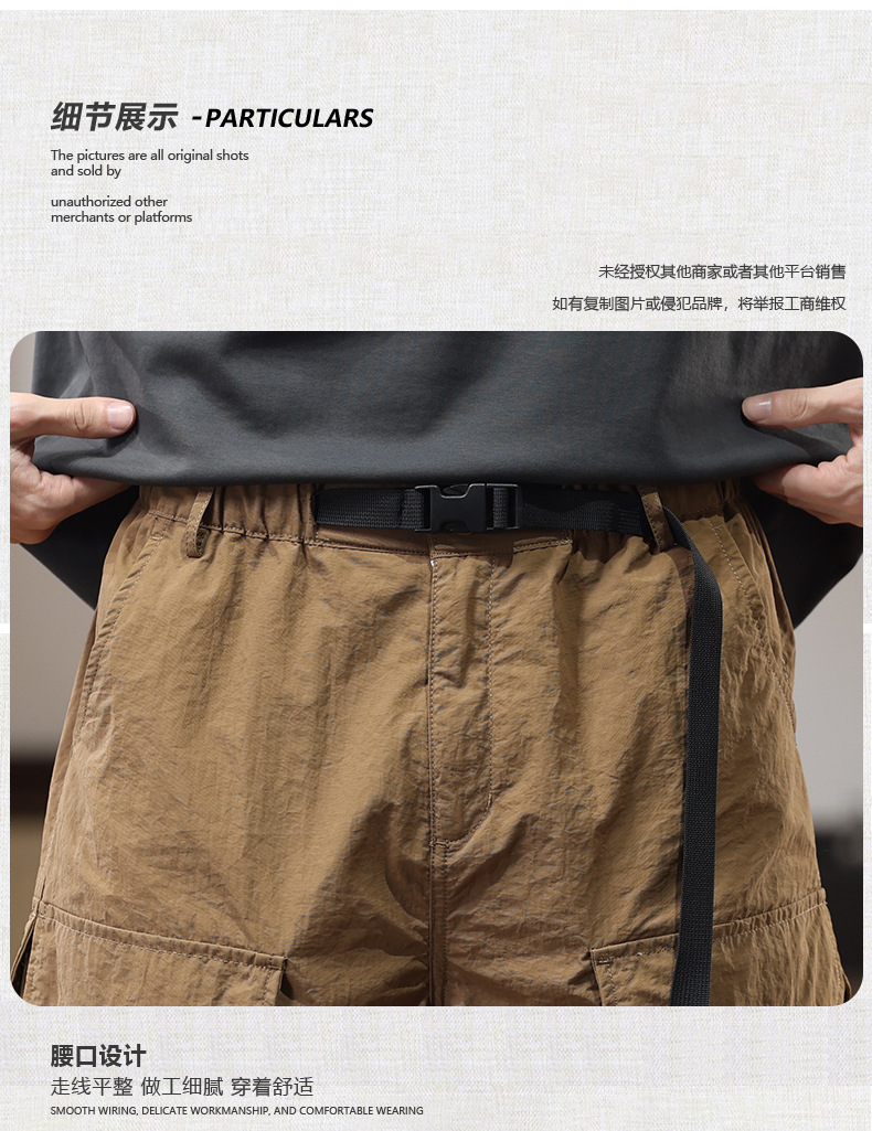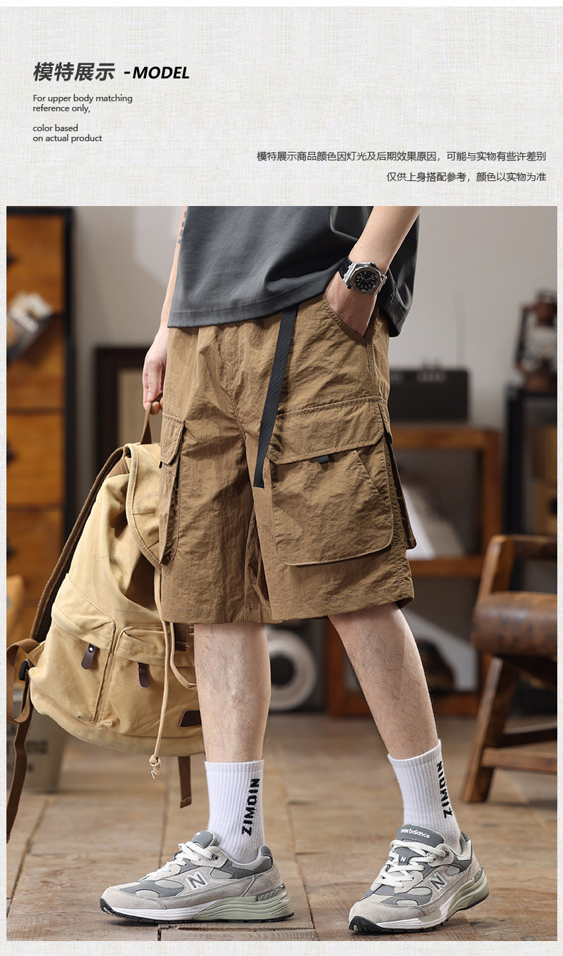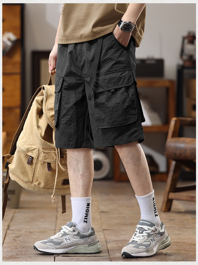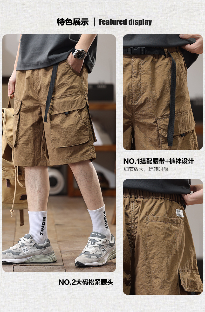 夏季新款美式潮流户外工装短裤宽松大码多口袋男士薄款五分裤灰色