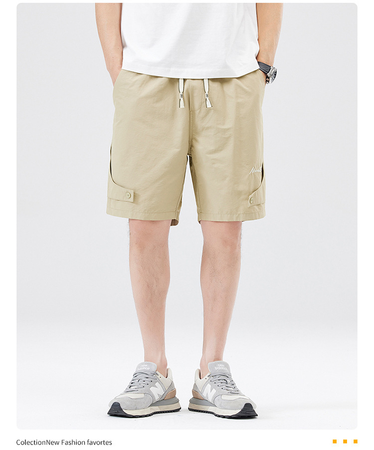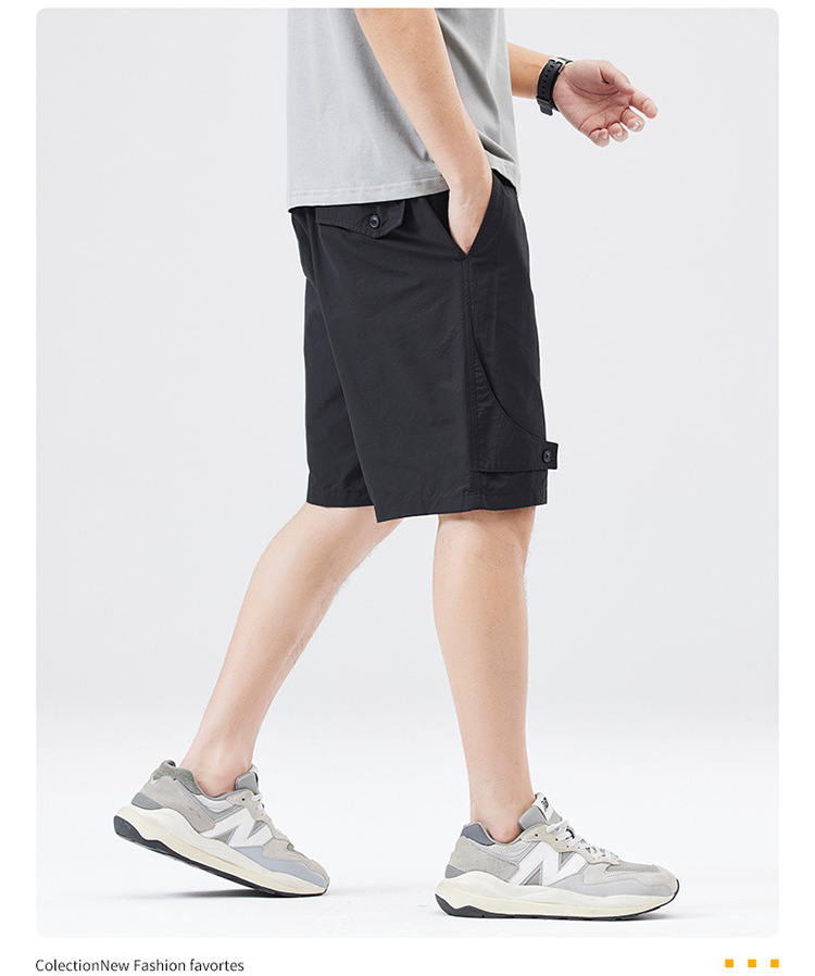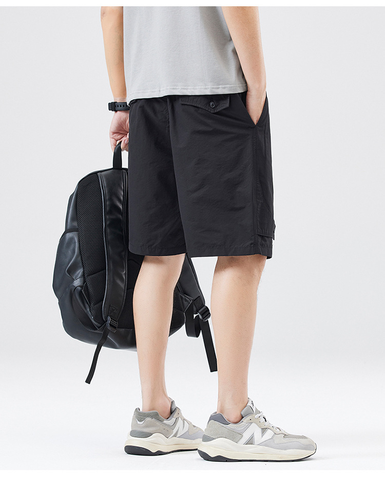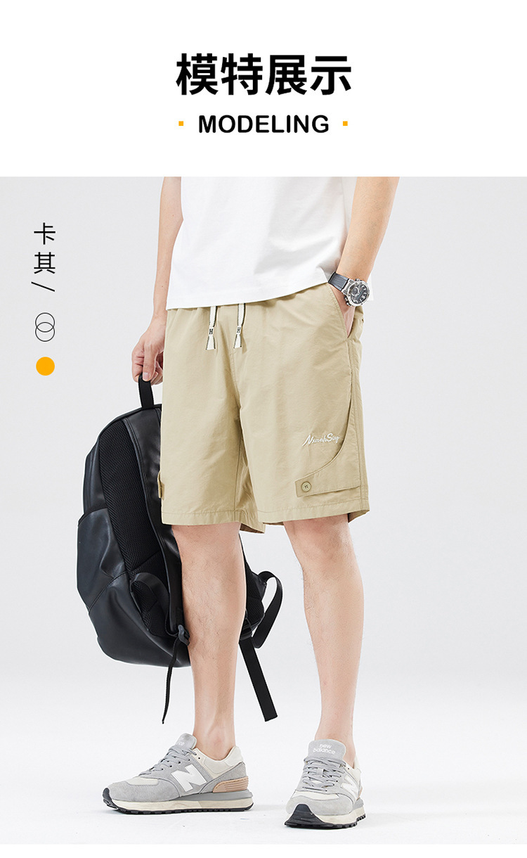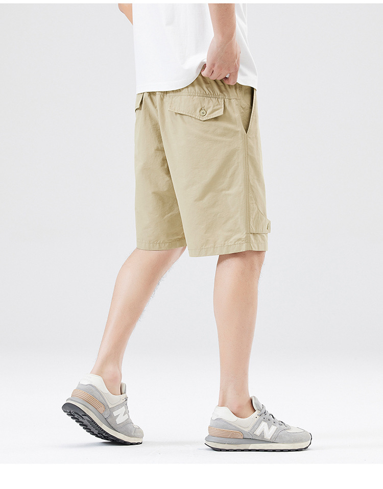 夏季新款男美式休闲重磅洗水户外复古风五分裤男卡其色黑色棉