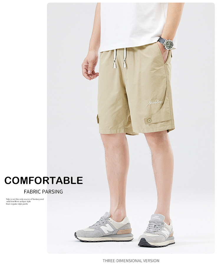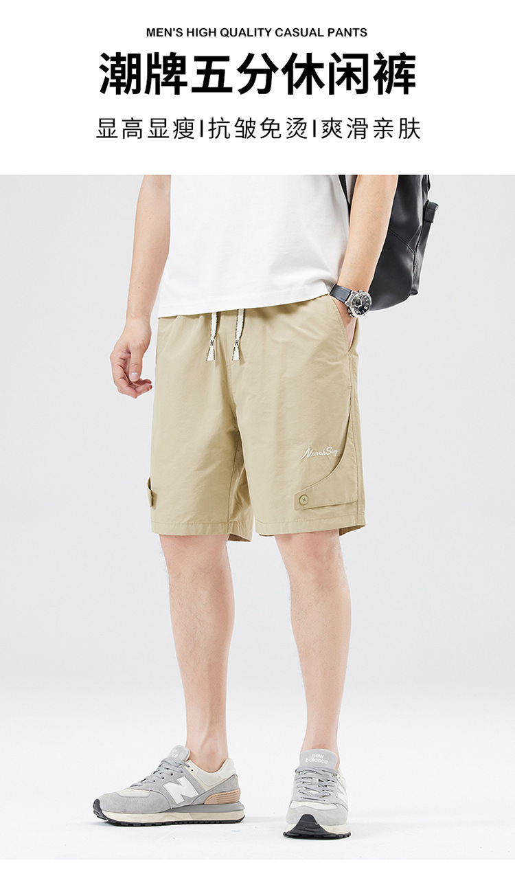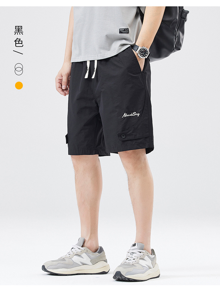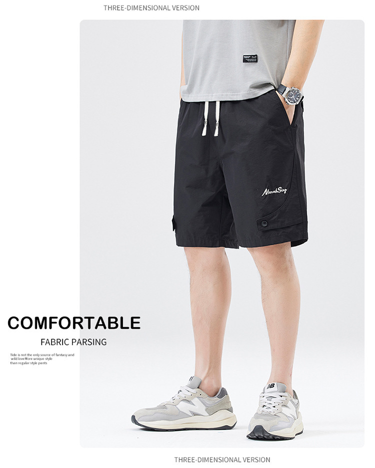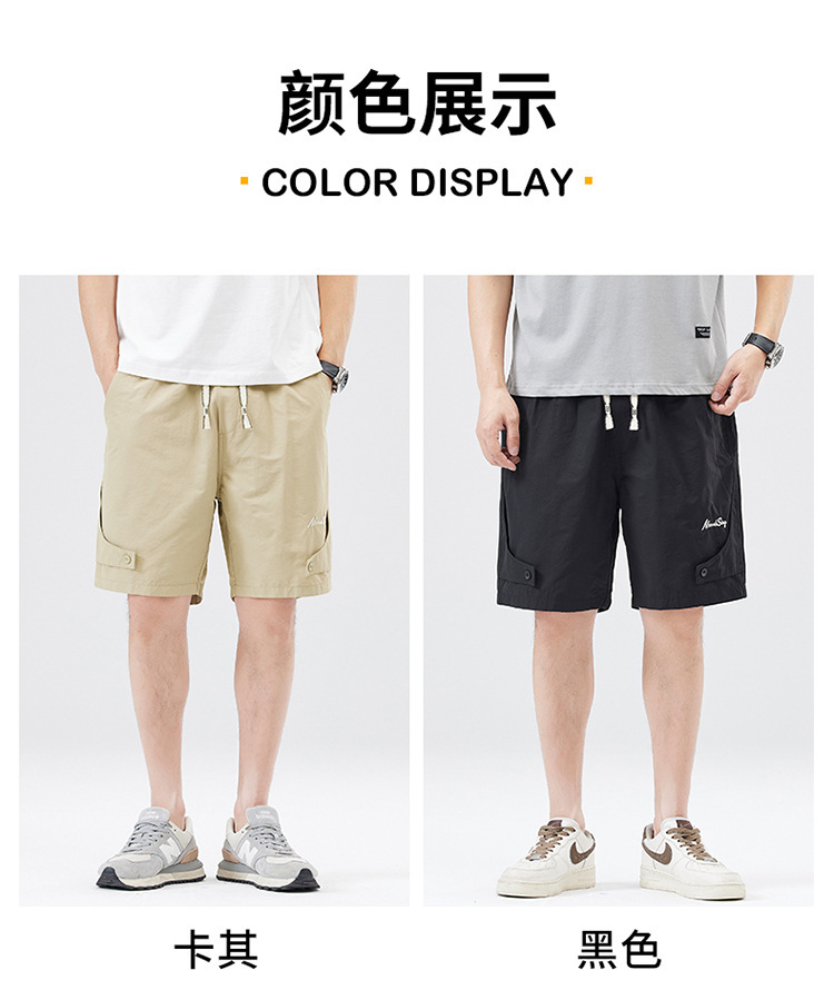 夏季新款男美式休闲重磅洗水户外复古风五分裤男卡其色黑色棉