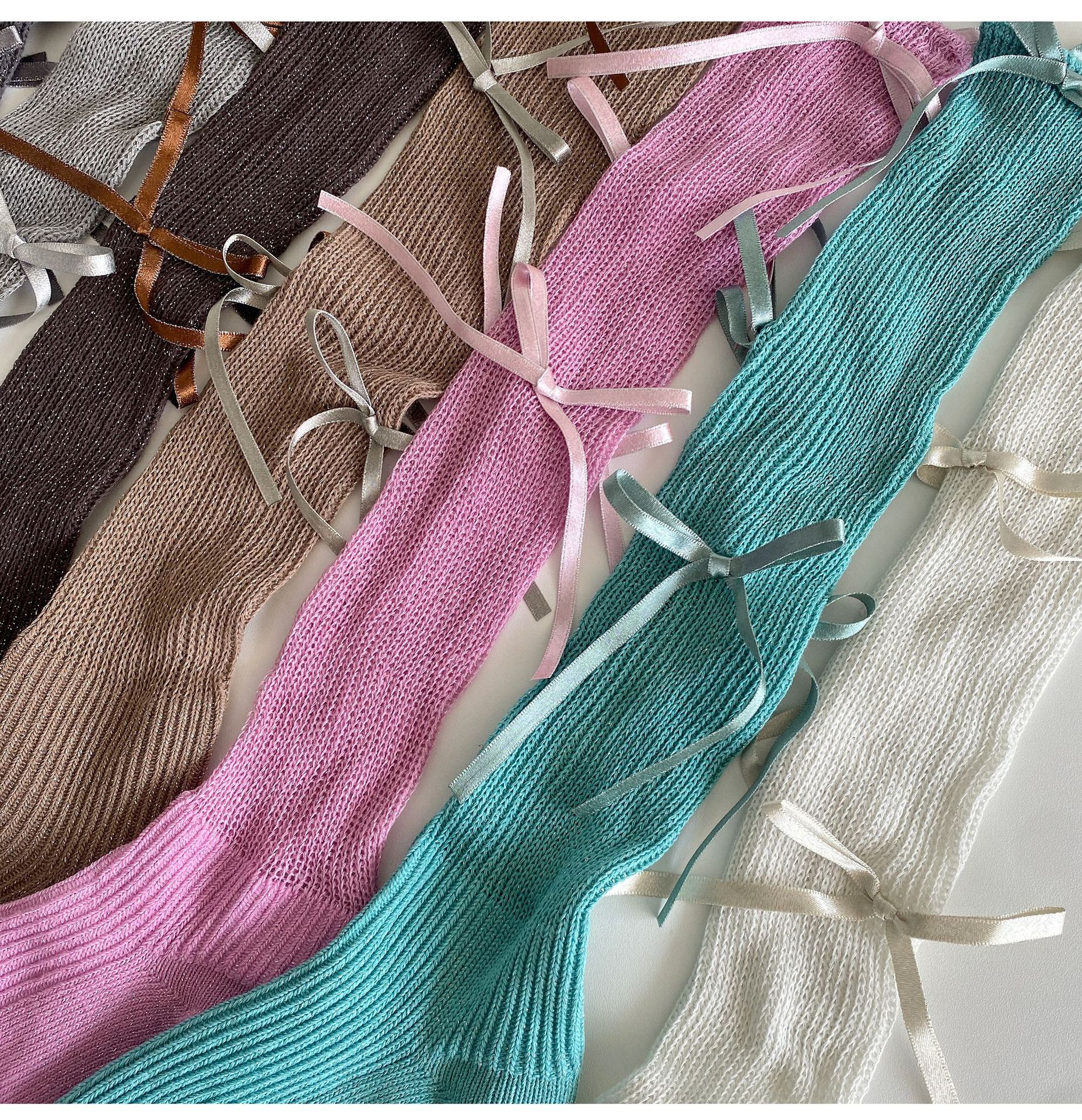 春秋新品美拉德丝带蝴蝶结甜酷百搭小腿袜亮丝bling堆堆中筒袜女