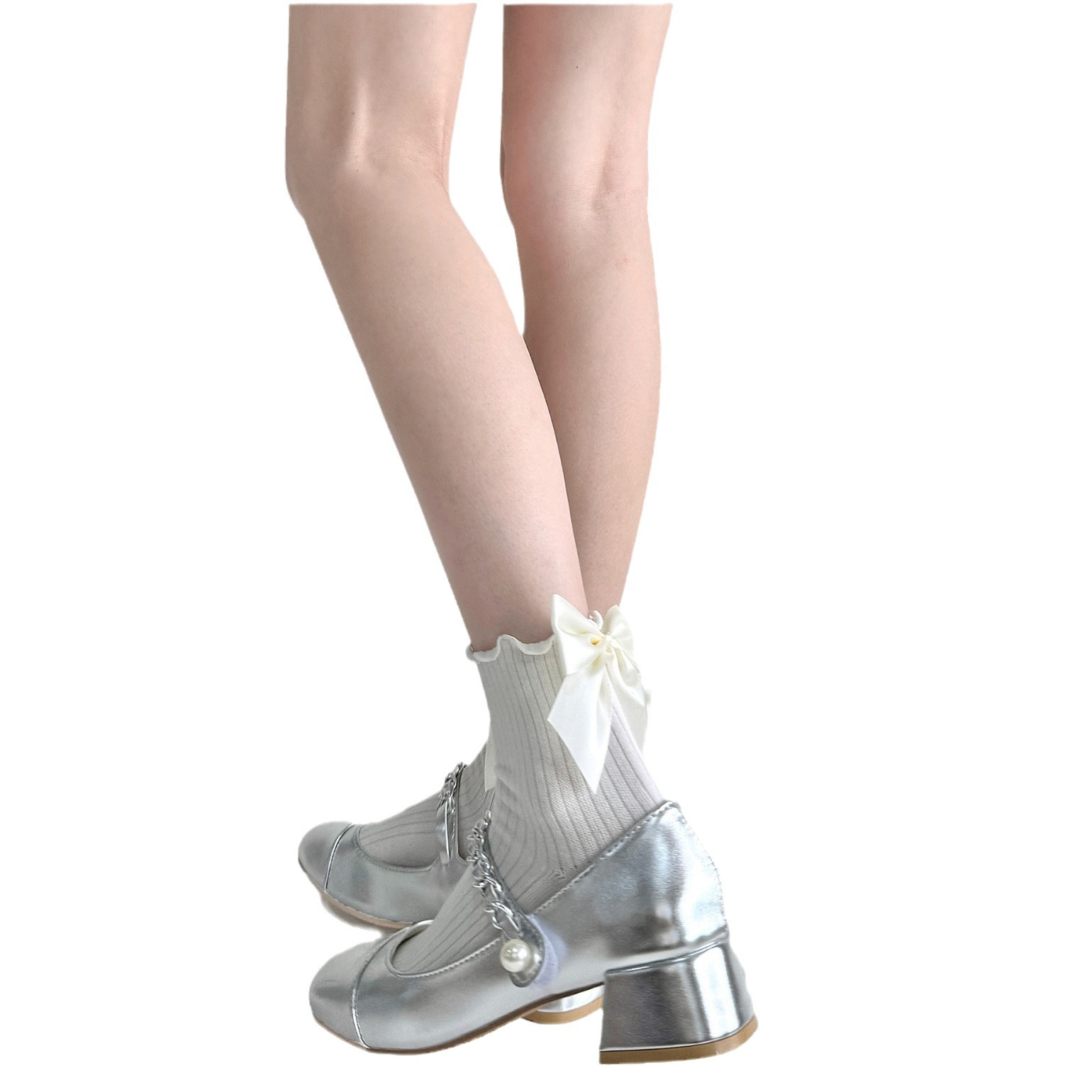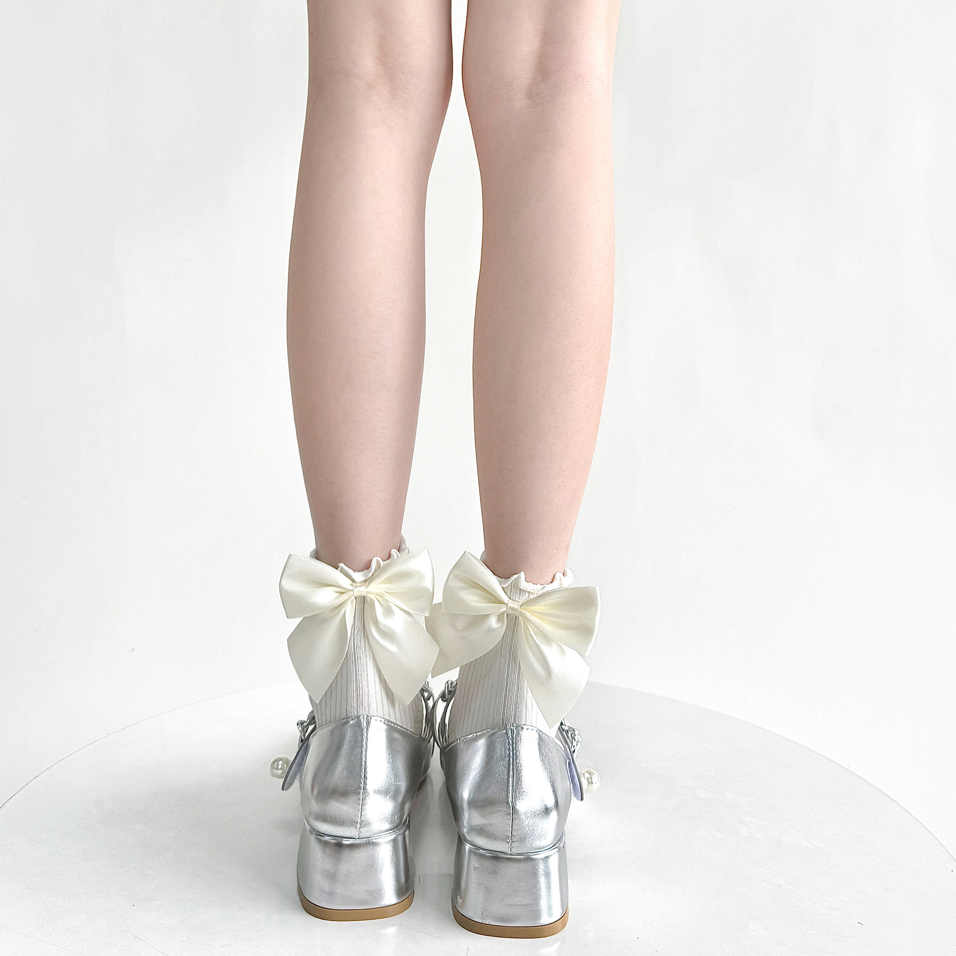 夏季木耳边甜美棉短袜洛丽塔奶白色大蝴蝶结少女jk玛丽珍中筒袜