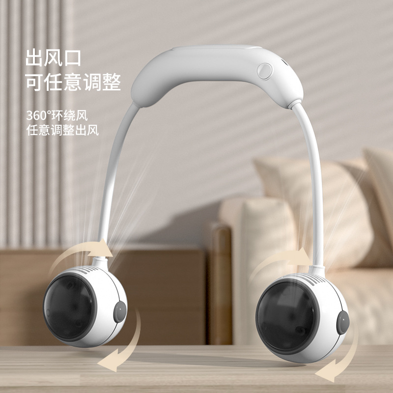 宇航员挂脖风扇涡轮双通道小风扇USB充电挂脖式小风扇