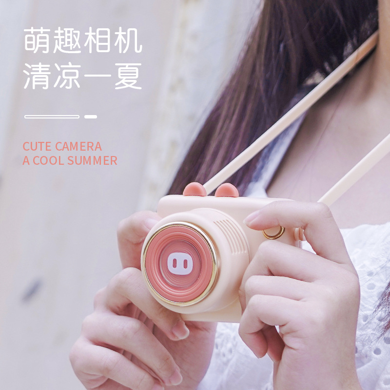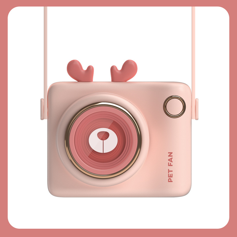 萌趣小鹿挂脖小风扇卡通相机挂绳电风扇UBS充电式便携小风扇