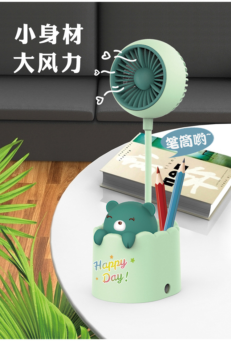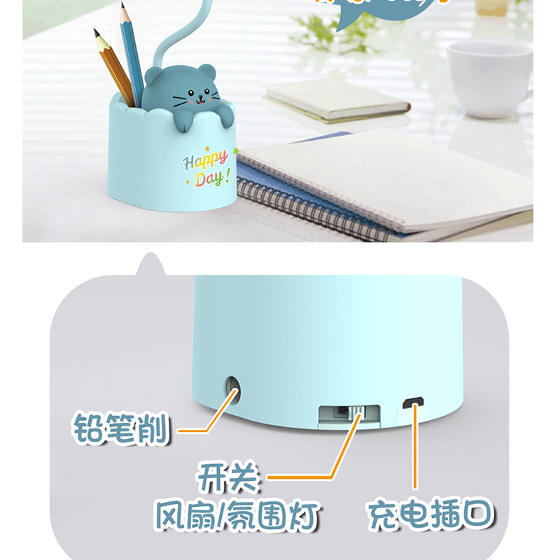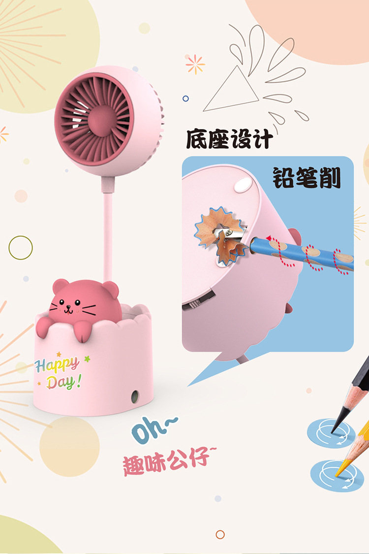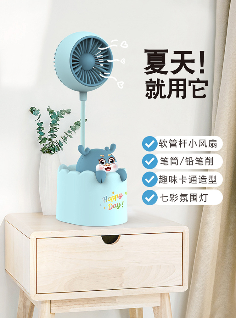 创意儿童桌面削铅笔收纳笔筒小风扇 七彩氛围灯折叠式usb卡通风扇