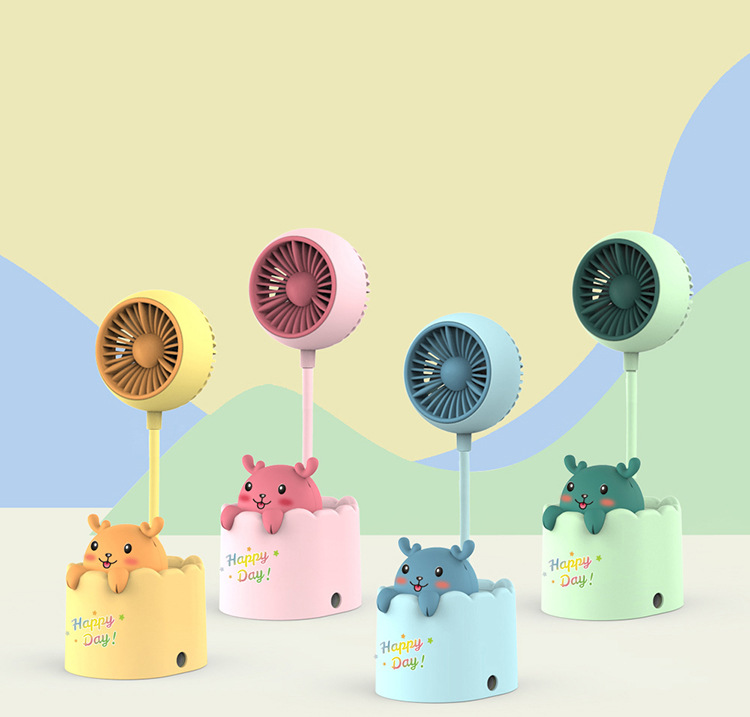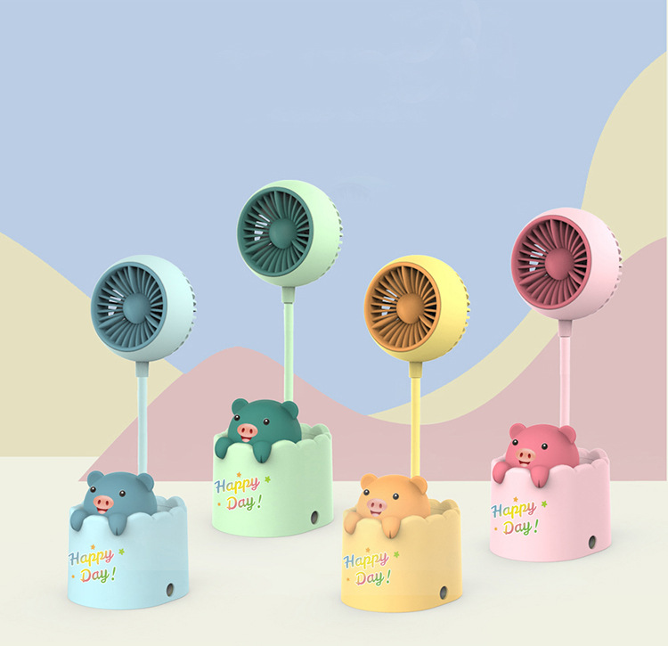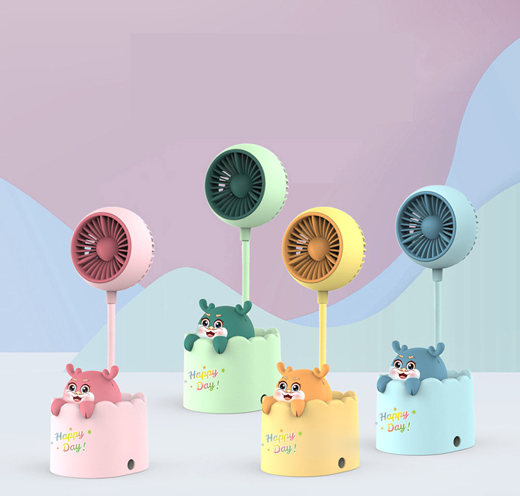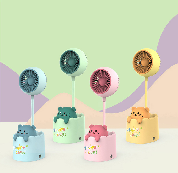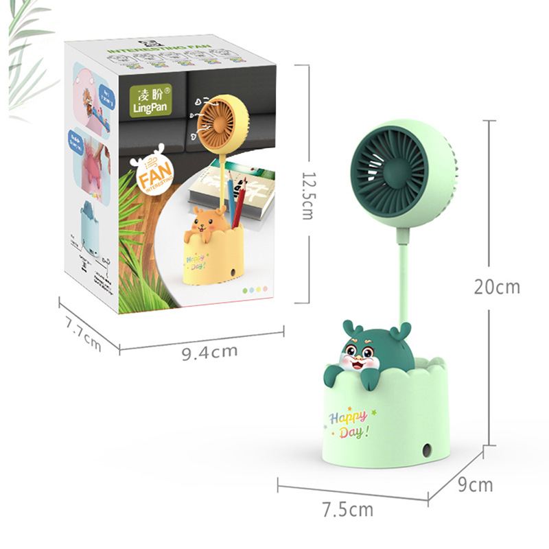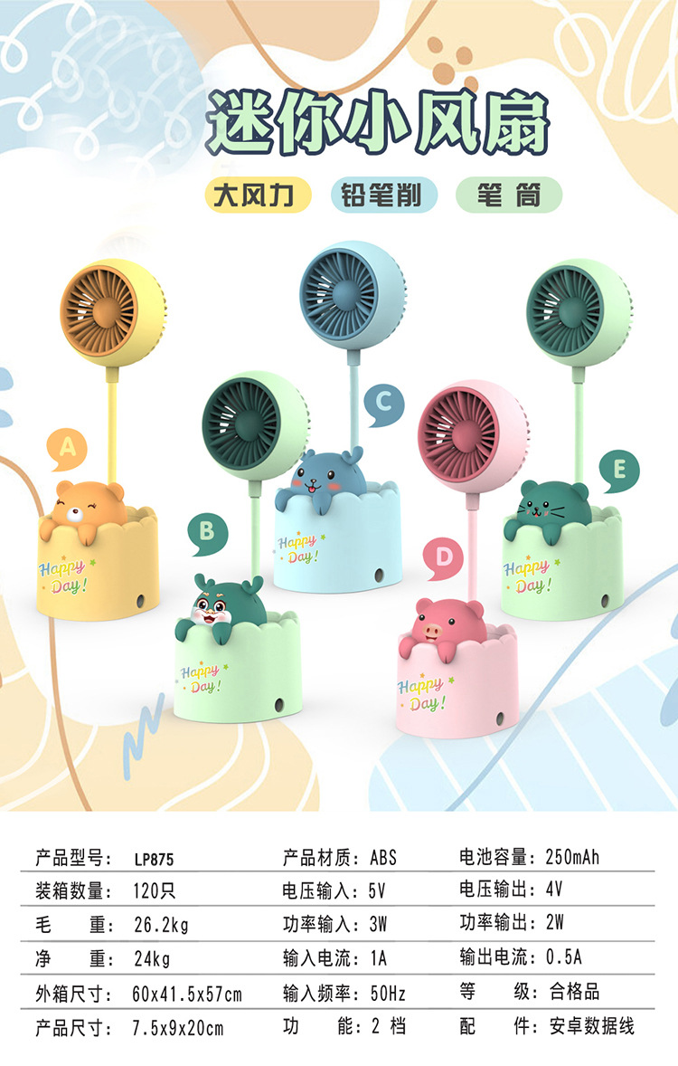 创意儿童桌面削铅笔收纳笔筒小风扇 七彩氛围灯折叠式usb卡通风扇