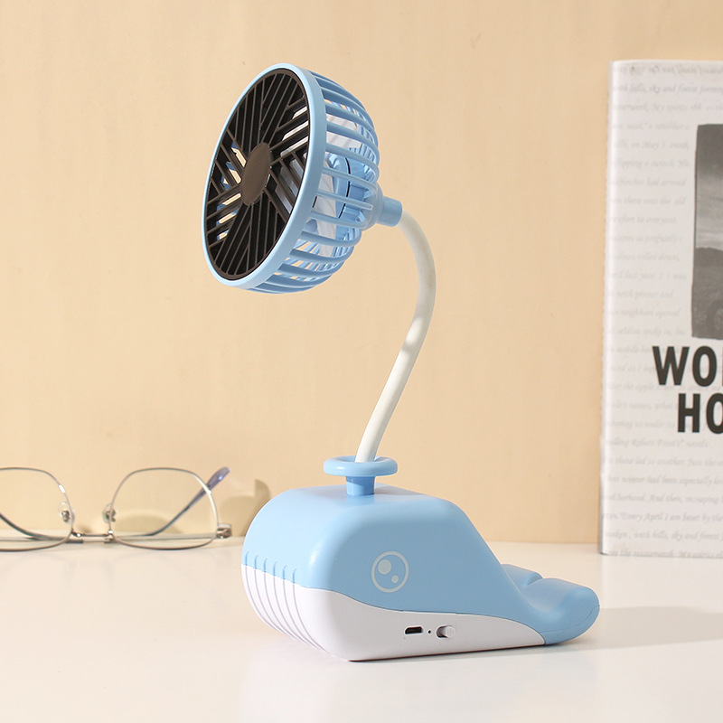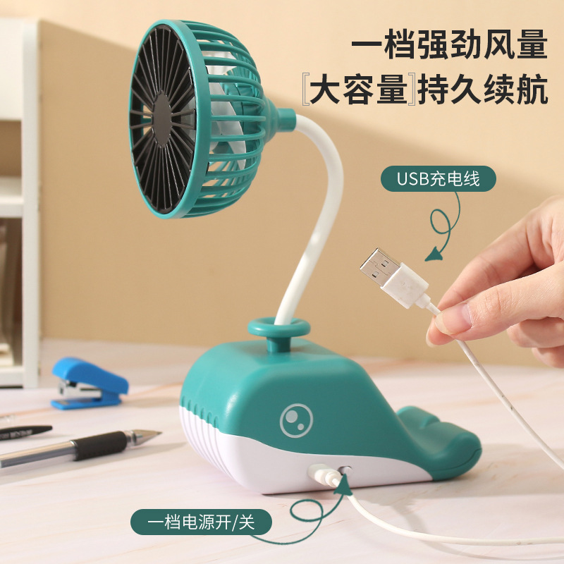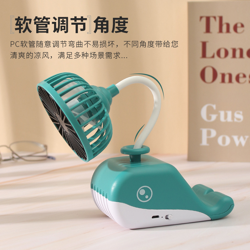 桌面简卡通鲸鱼小风扇桌面充电USB小风扇软管360万向手机支架风扇
