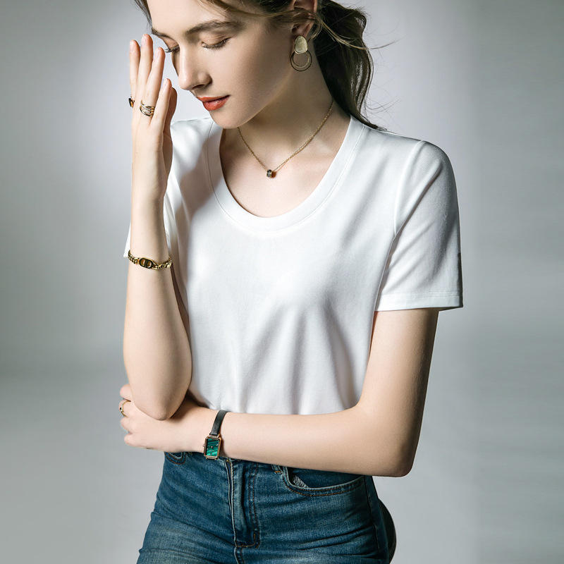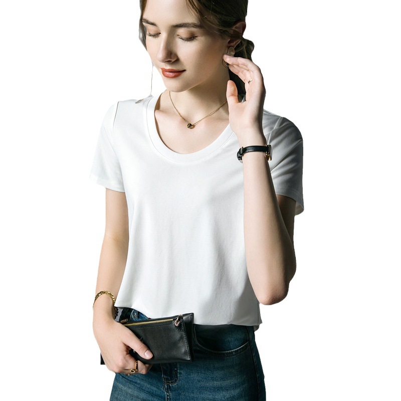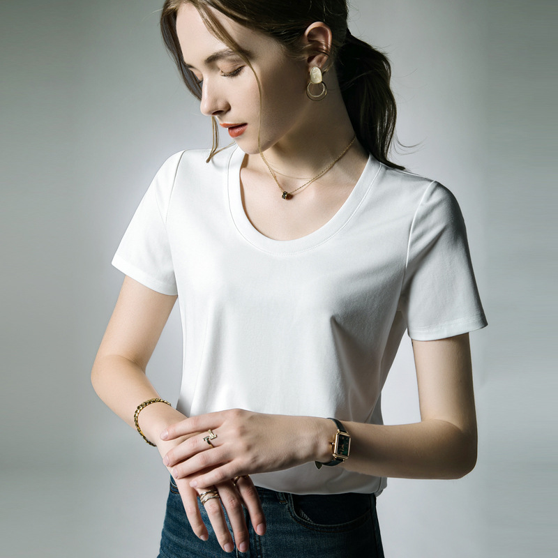 美式纯棉U领灰色百搭短袖T恤女夏季修身显瘦半袖上衣低领正肩体桖