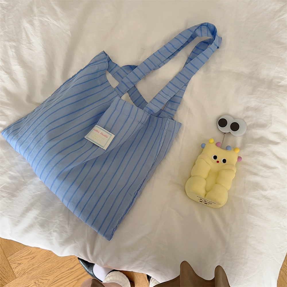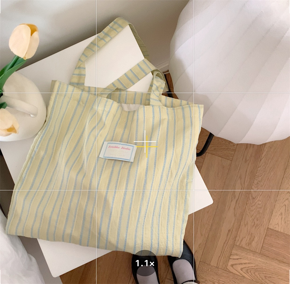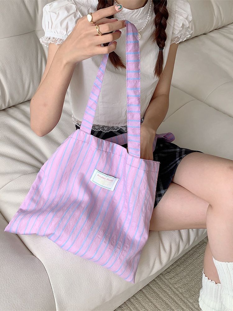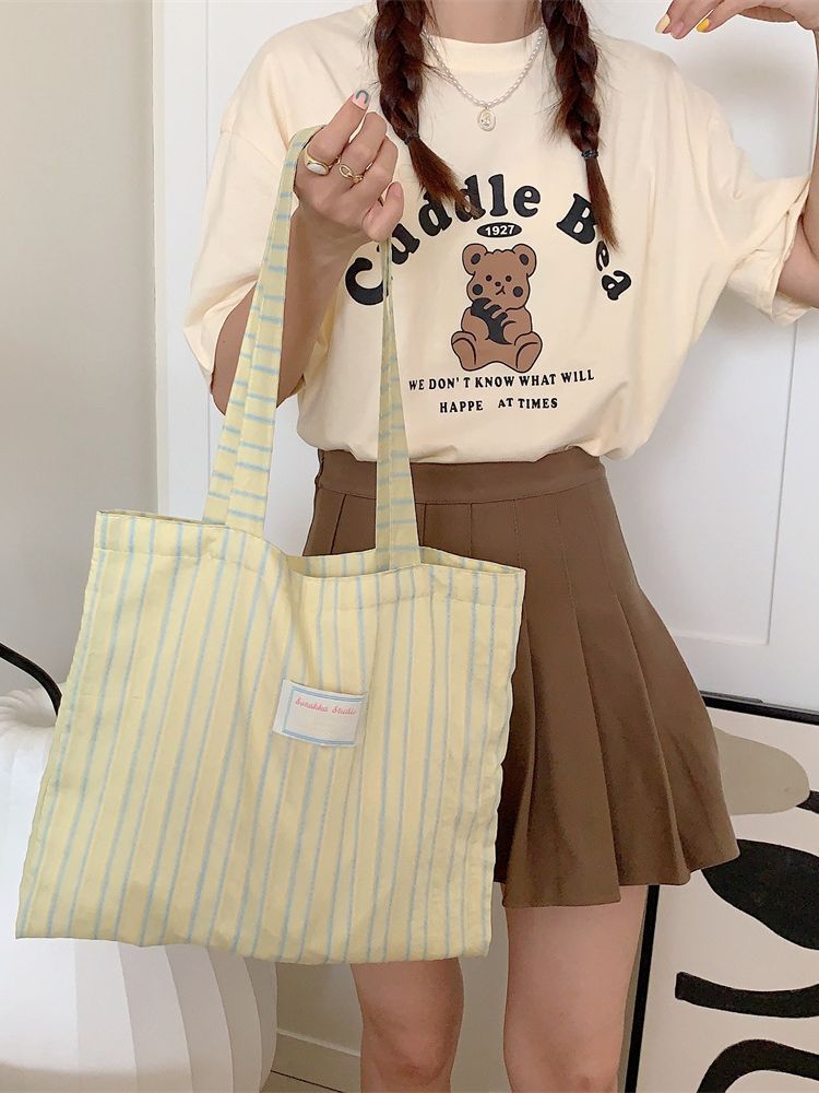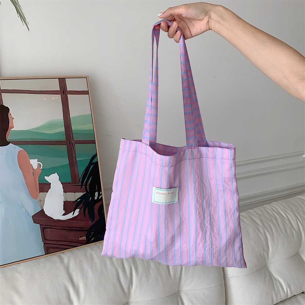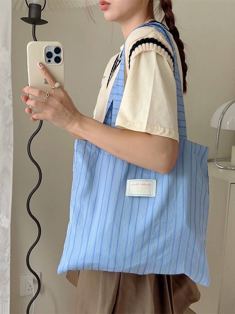 撞色条纹帆布包简约通勤托特包学生大容量单肩包手提包休闲