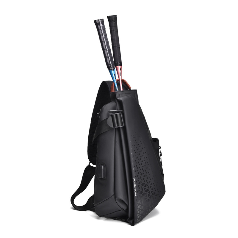 纯色机能男士胸包大容量可装羽毛球拍斜挎包防泼水USB多功能背包
