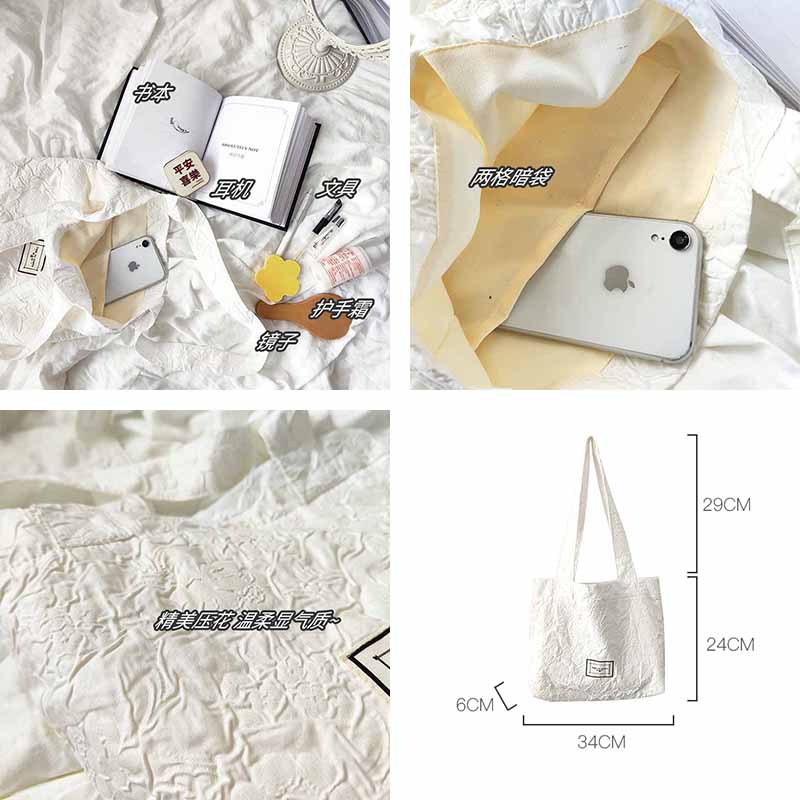 新款休闲大容量ins学生单肩托特包双面压花字母帆布包女