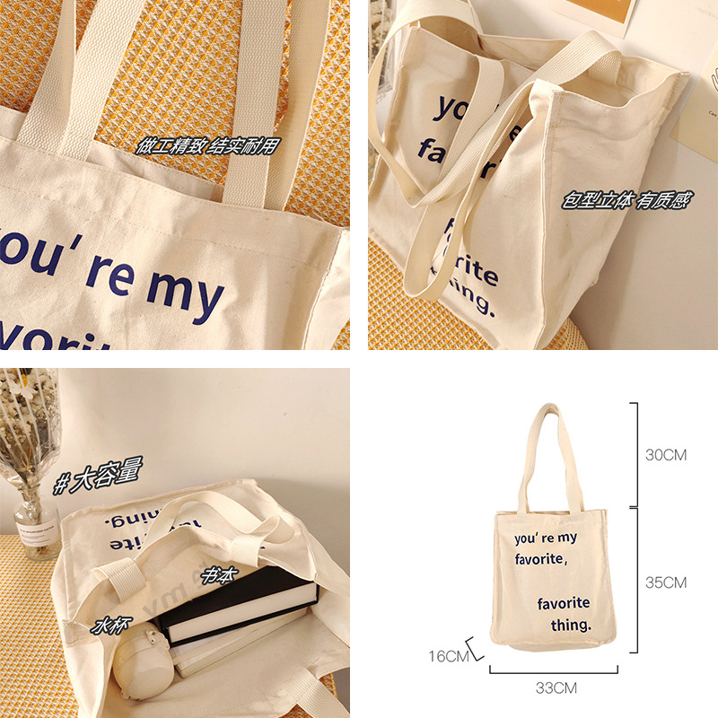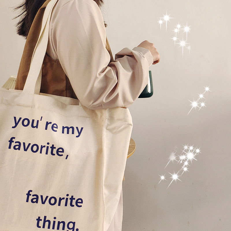 ins简约百搭帆布包女小众字母帆布袋大容量购物袋