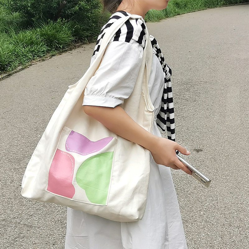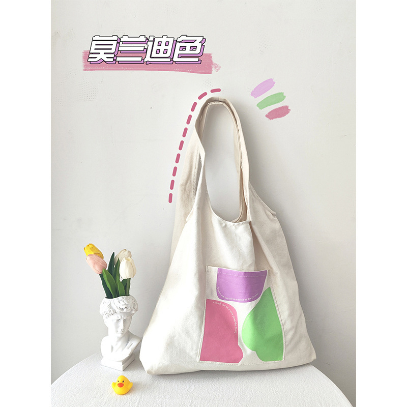 莫兰迪撞色帆布包女大容量背心包小众布袋购物袋