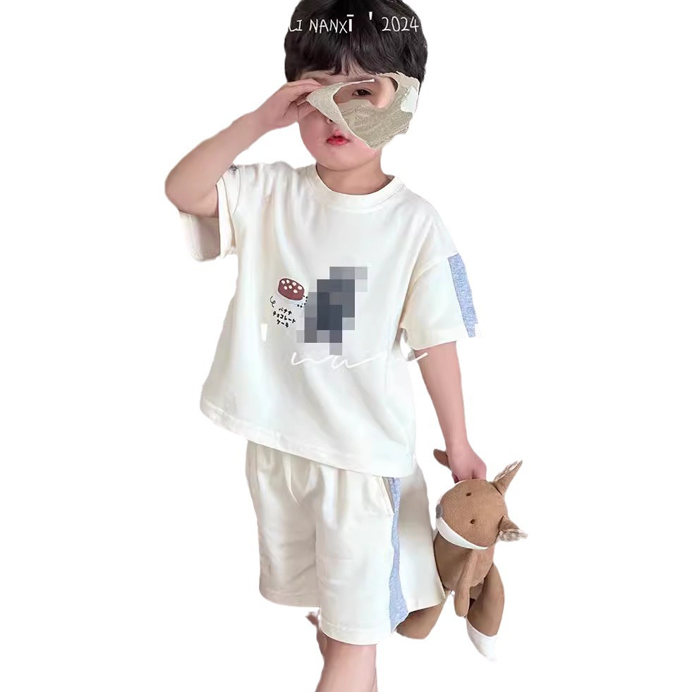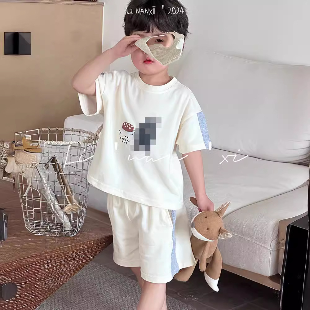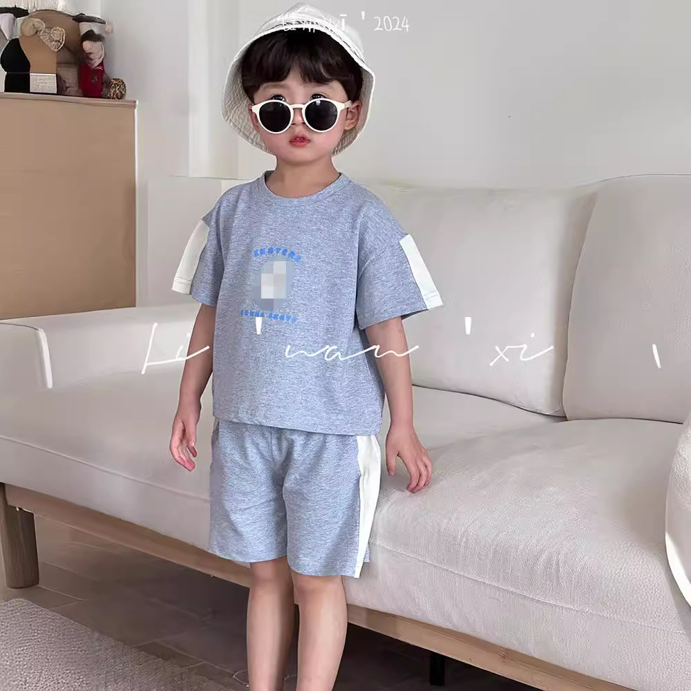 24夏新款男童套装男女童针织撞色珠地短袖+短裤2两套宝宝可爱上下
