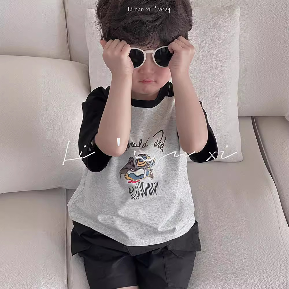 24年夏季新款儿童T恤男女童短袖T宝宝圆领衫短袖针织上衣数码印花