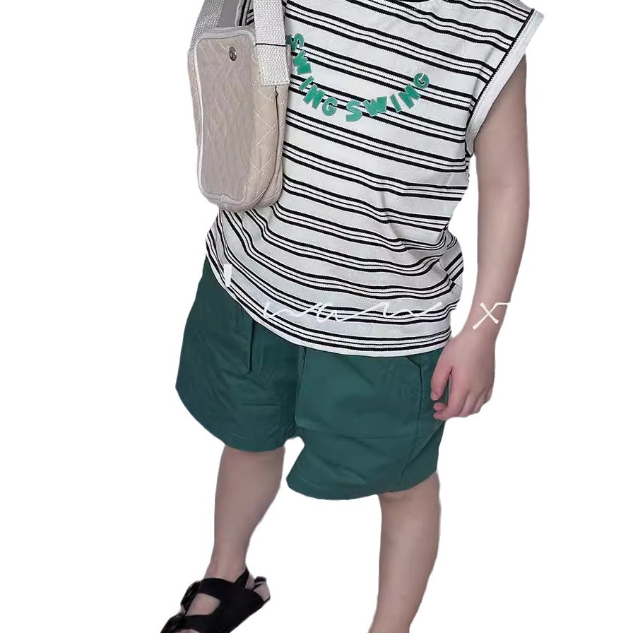 儿童条纹套装夏季新款女童蝴蝶结短袖T恤女宝短裤两件套1166