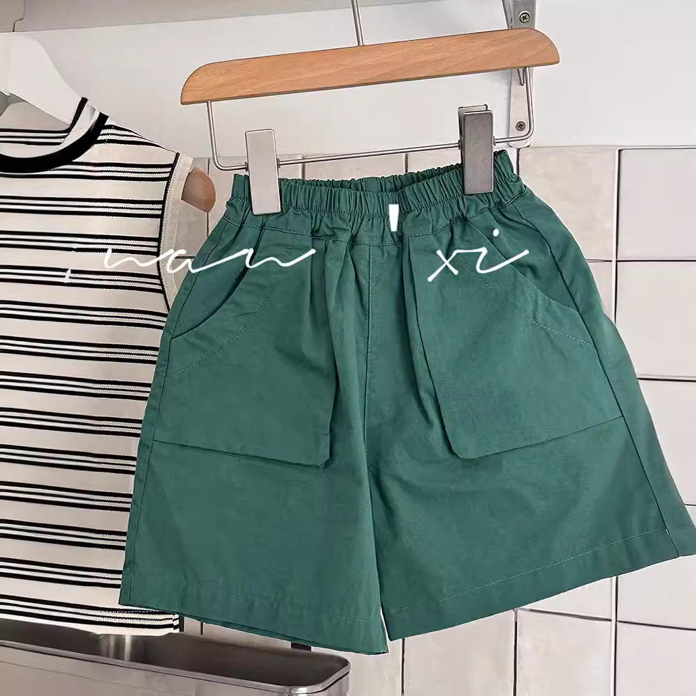 24夏新品儿童短裤男女童休闲工装风立体口袋高密棉布五分裤
