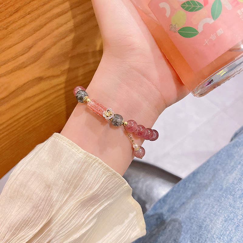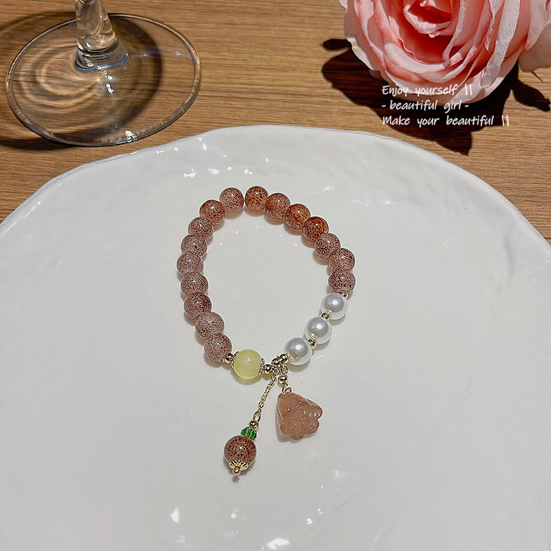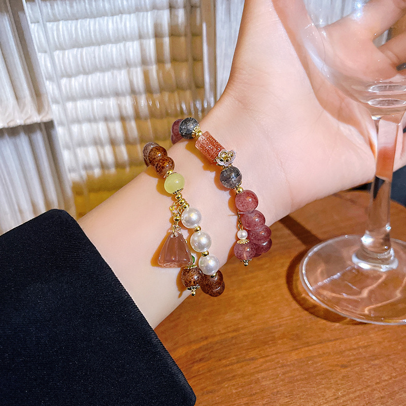 轻奢小众草莓晶珍珠花朵手链女ins潮百搭气质莲藕吊坠手串手饰品