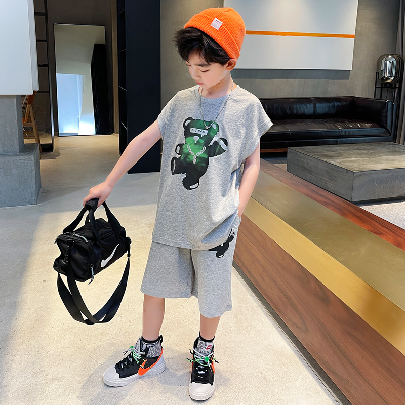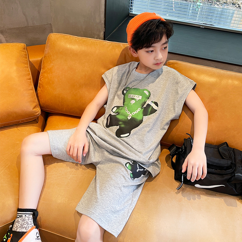 男童夏装短袖套装新款中大童男孩韩版童装T恤两件套潮棉变色