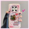 卡通小熊补妆镜子适用华为mate50Pro手机壳p40皮质30网红女荣耀50