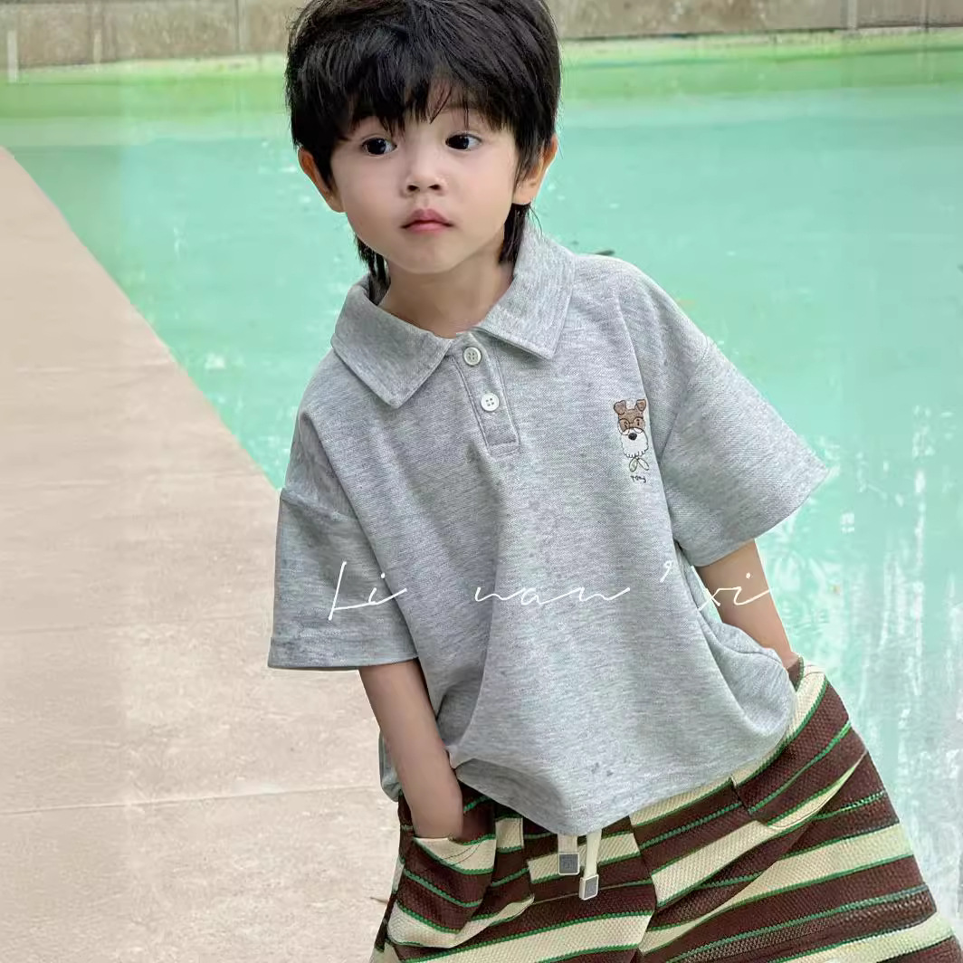 24夏季新款男童短袖针织POLO领T恤3-8岁宝宝卡通绣花