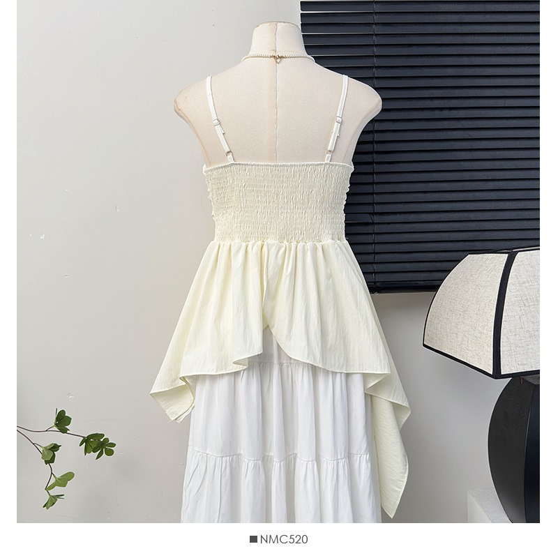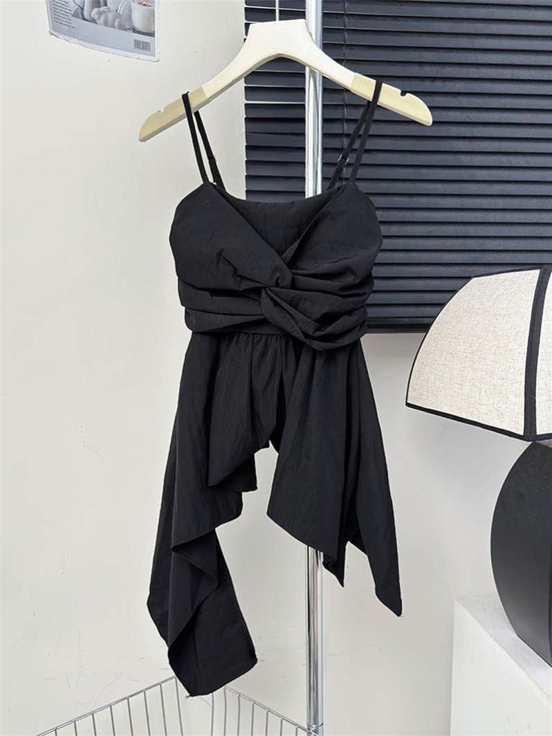 法式不规则荷叶边抹胸吊带背心女夏外穿海边穿搭辣妹褶皱无袖上衣