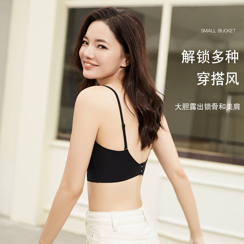 内衣女无痕薄款光面抹胸文胸无钢圈小胸聚拢上托透气调整型收副乳