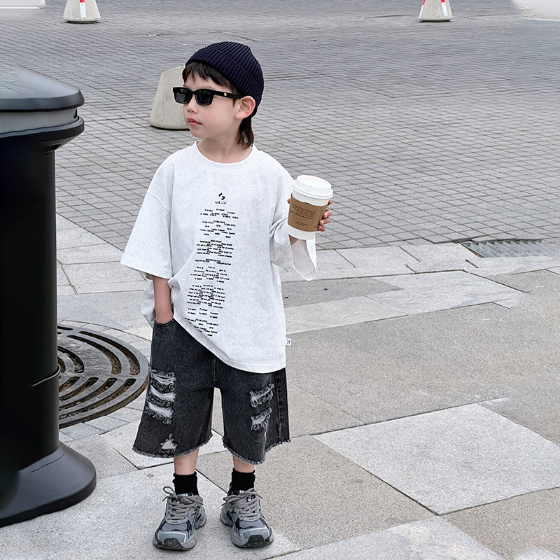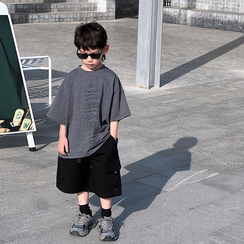 男童短袖夏季打底衫t恤儿童装潮流百搭日系美式休闲上衣字母跨境