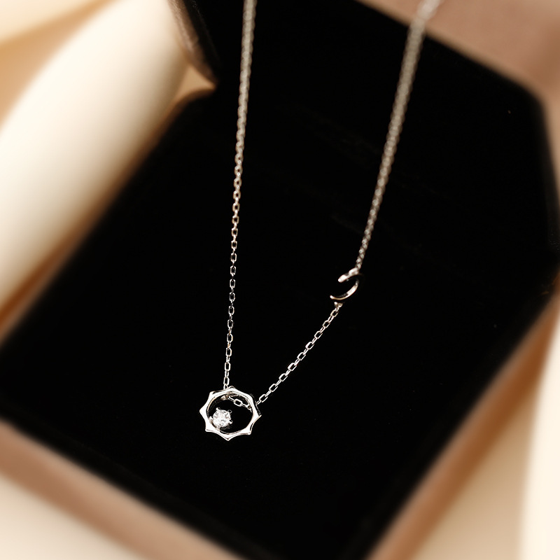 韩国爆款新品ins风星月颈链高级感太阳镶钻吊坠925纯银项链女饰品