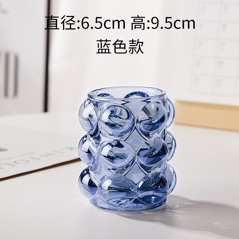 简约ins风创意圆球玻璃笔筒收纳化妆刷桶桌面摆件烛台蜡烛杯