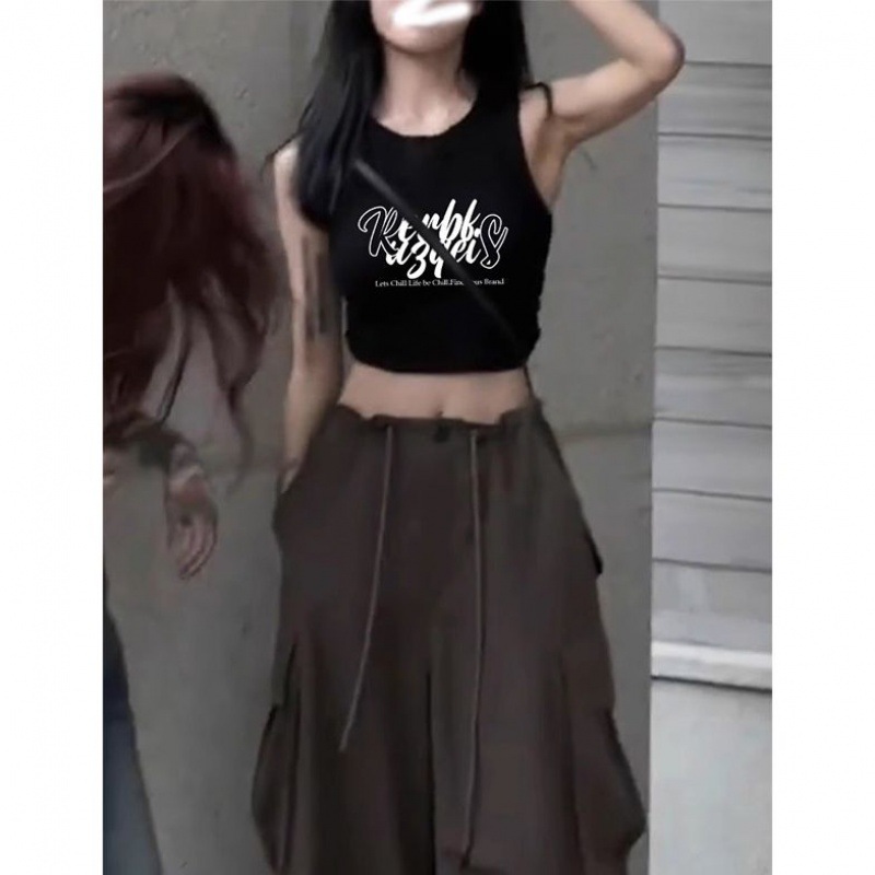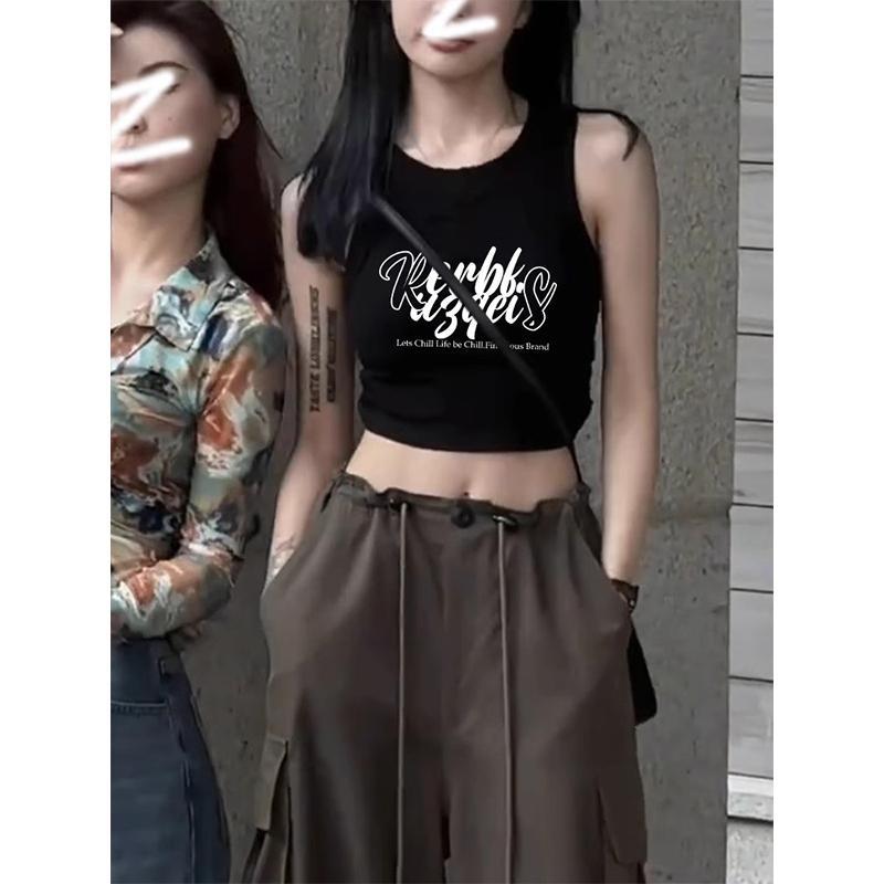 跨境美式吊带小背心女内搭夏甜辣妹外穿搭独特别致无袖针织衫上衣