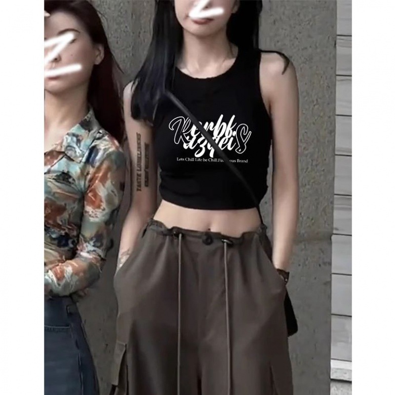 美式小个子百搭无袖上衣小背心女夏季黑色纯棉性感辣妹外穿T恤ins