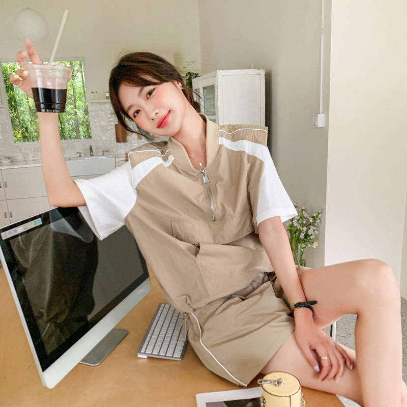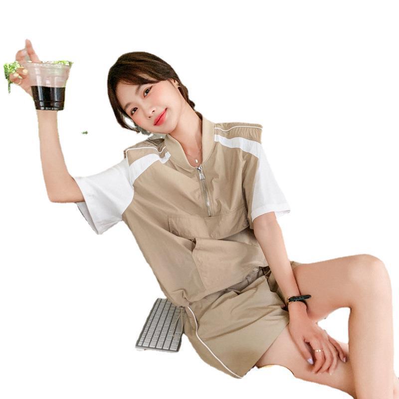 年夏装新款欧货女装两件套立领短袖上衣配短裤休闲宽松套装潮
