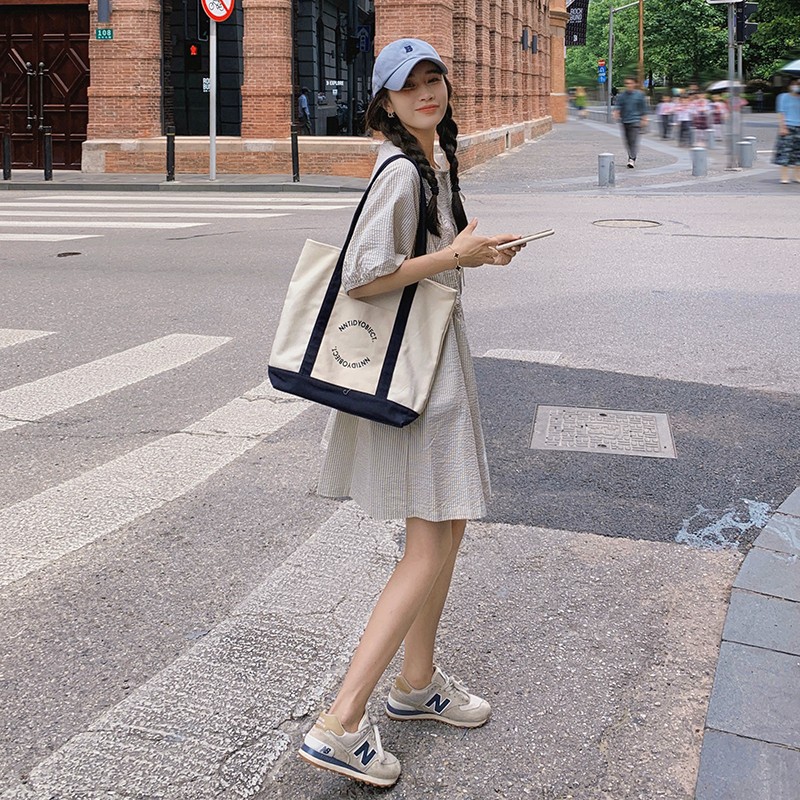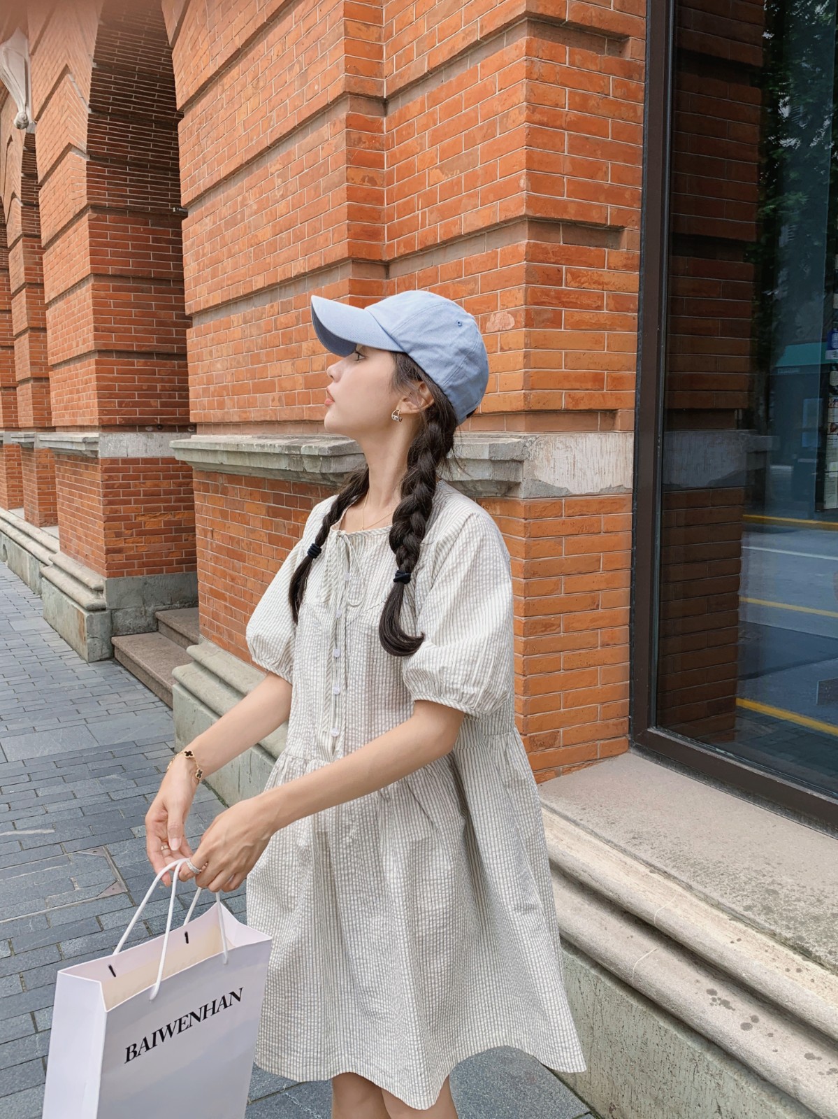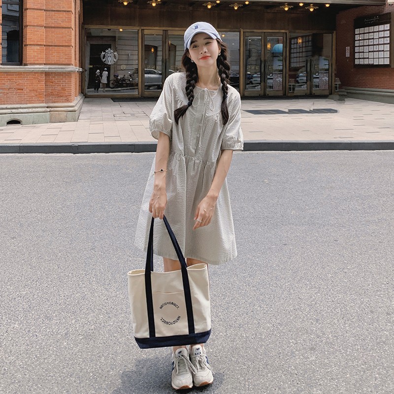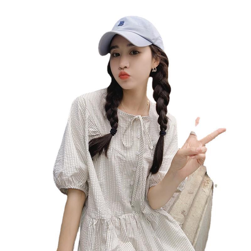 法式条纹裙子系带宽松娃娃裙连衣裙女装韩国东大门夏季新款