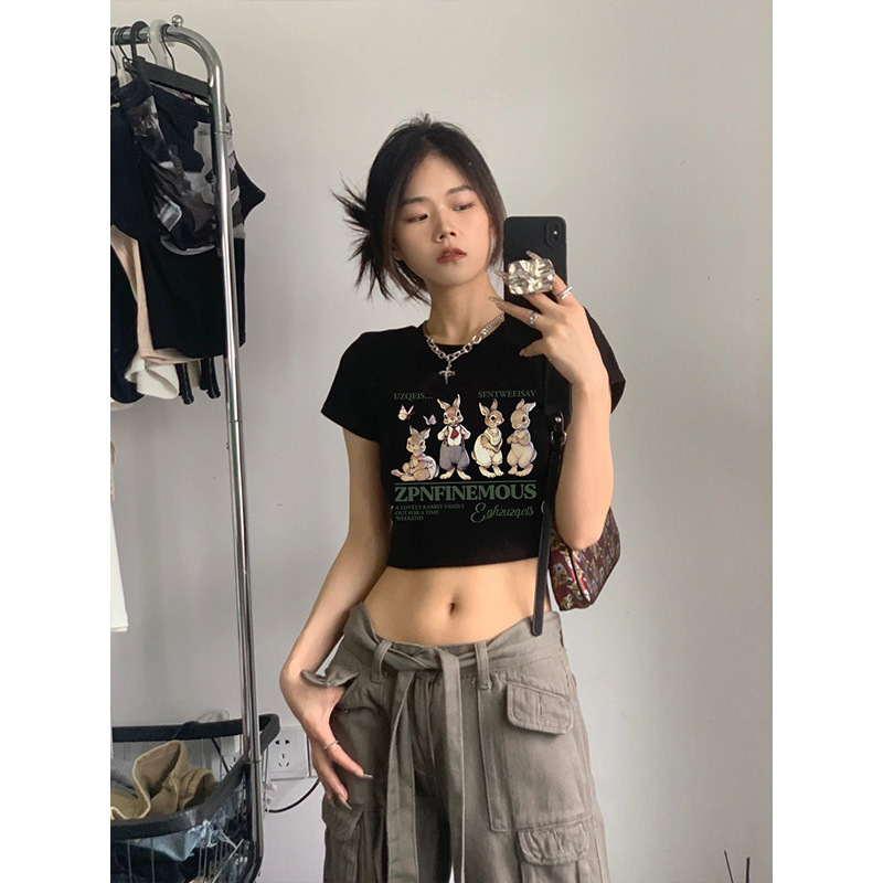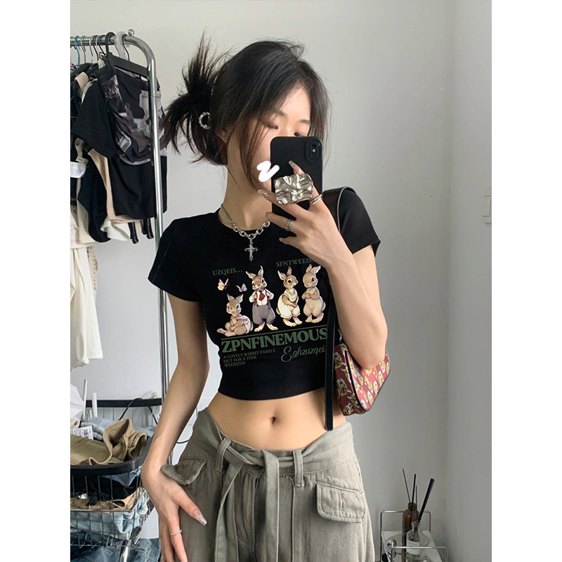字母1990印花白色短袖t恤女夏季新款设计感宽松短款上衣女夏