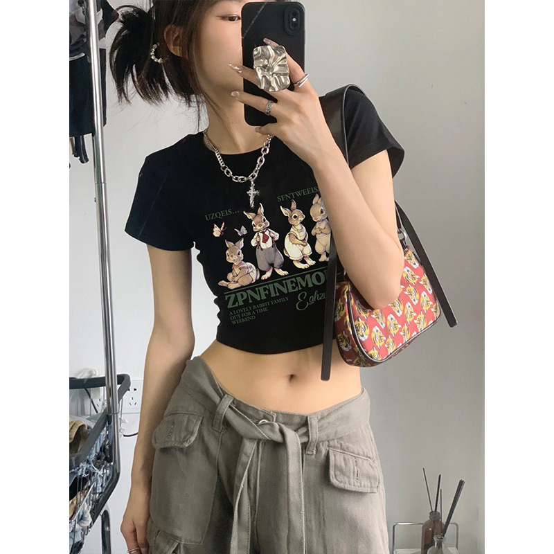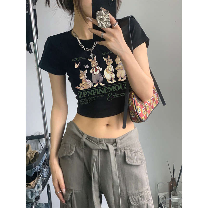 黑色正肩女t恤短款短袖夏季新款高腰修身显瘦露脐chic甜辣小上衣