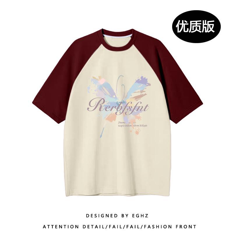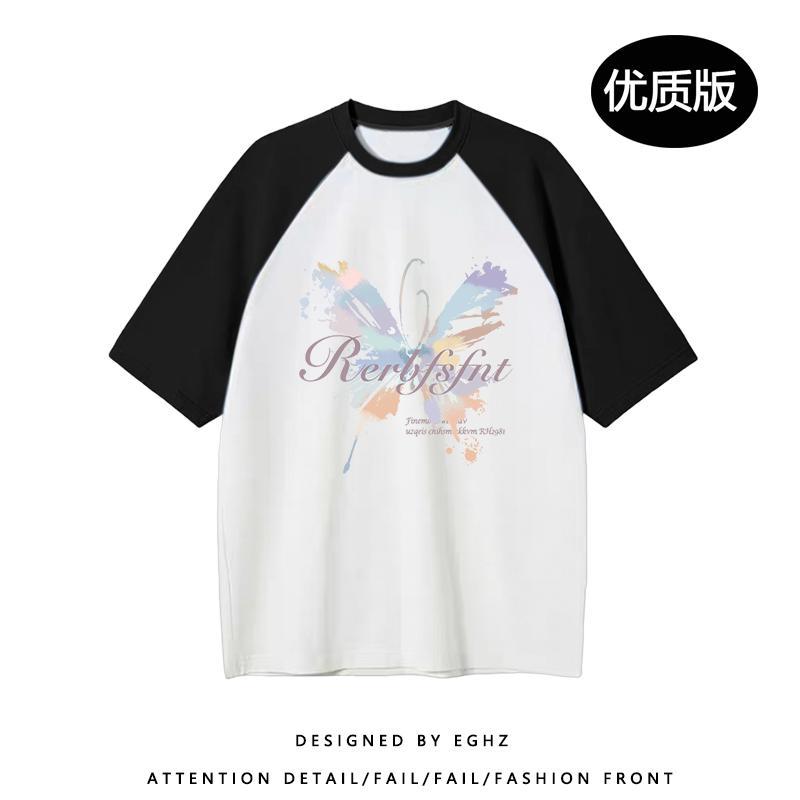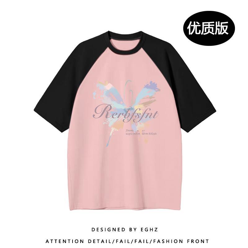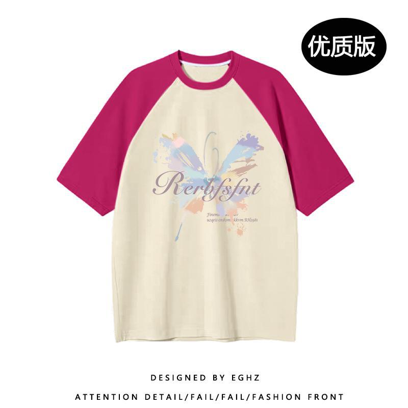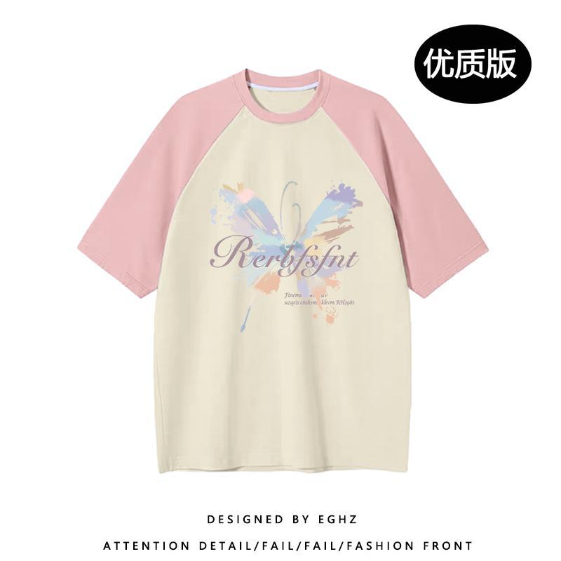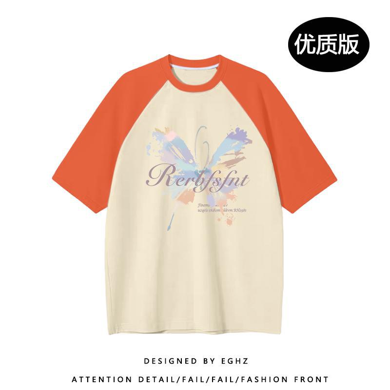 重磅插肩撞色拼接t恤女新款美式高街小众独特宽松半袖上衣潮