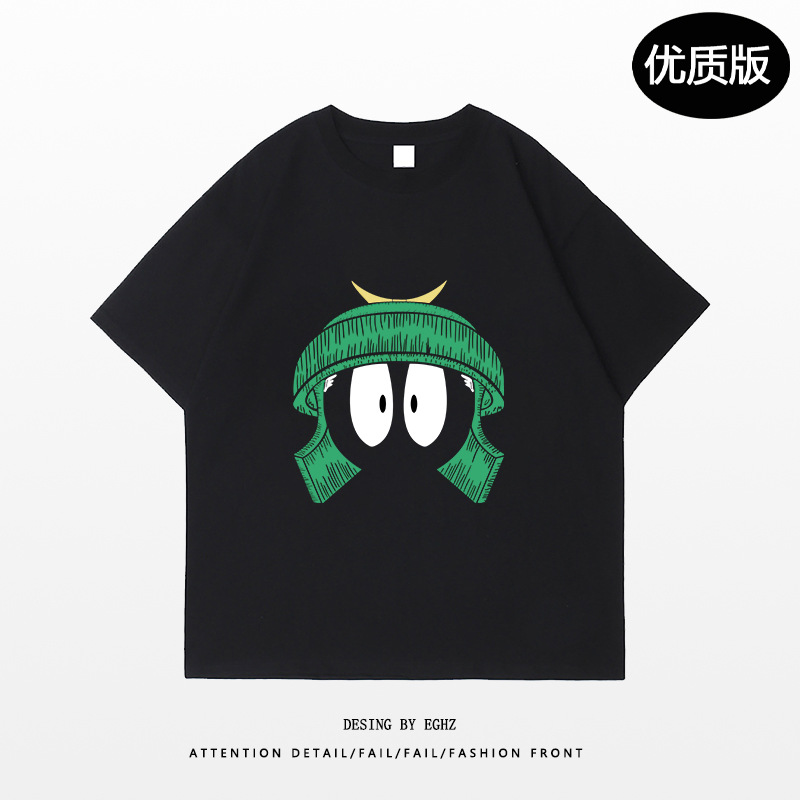 夏美式复古印花个性情侣正肩短袖T恤欧货高街圆领中长款上衣