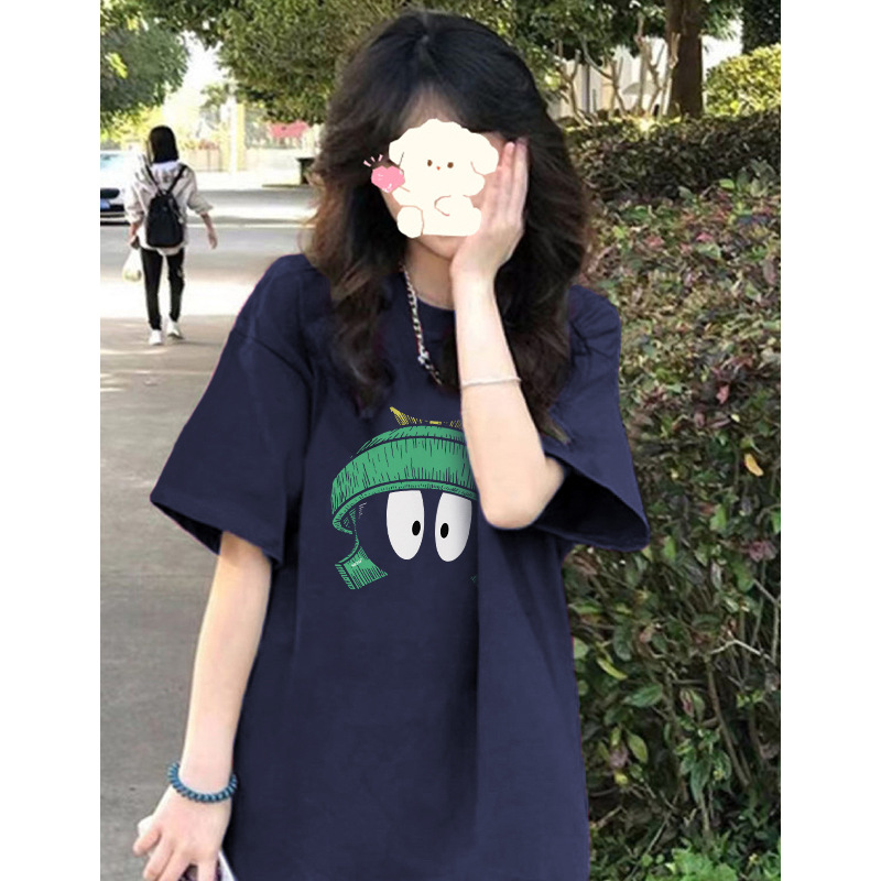 [220g-260g纯棉]美式复古藏蓝色短袖t恤女款夏季新款小个子小众潮