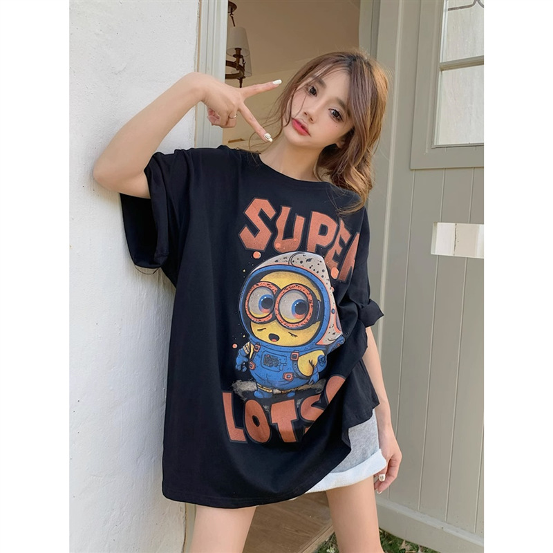 200斤超大码小黄人印花短袖t恤女夏季美式潮流百搭高级感宽松上衣