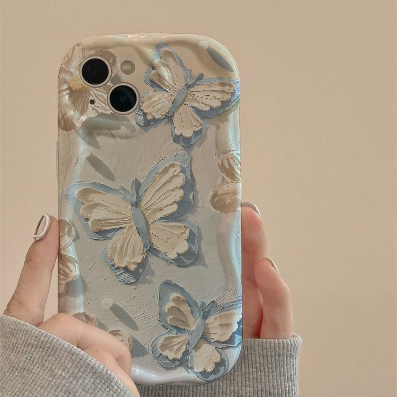 蓝底油画蝴蝶苹果15Pro手机壳iPhone14趣味12mini全包11/13创意78