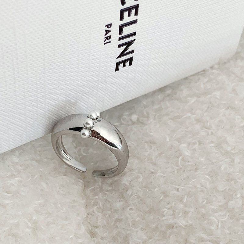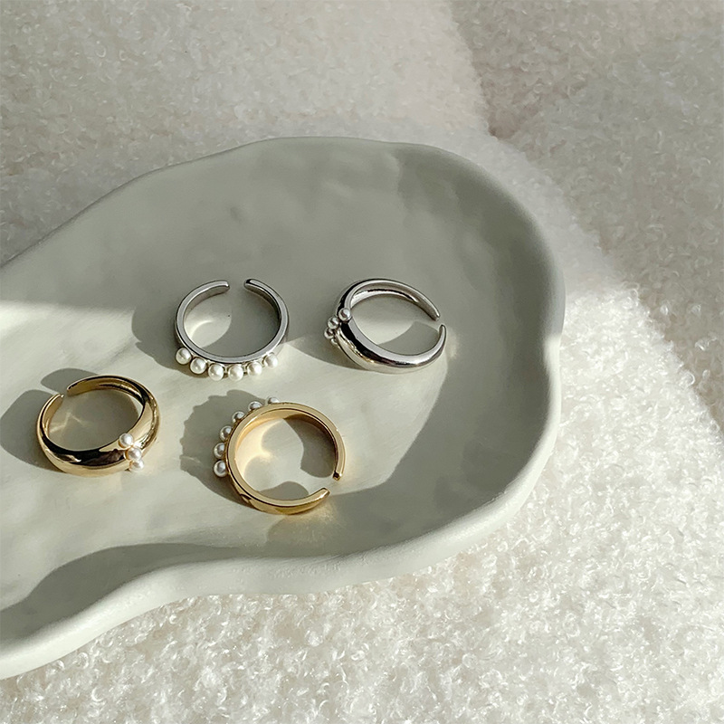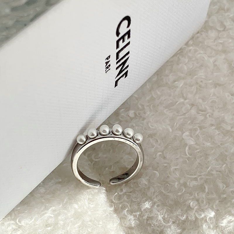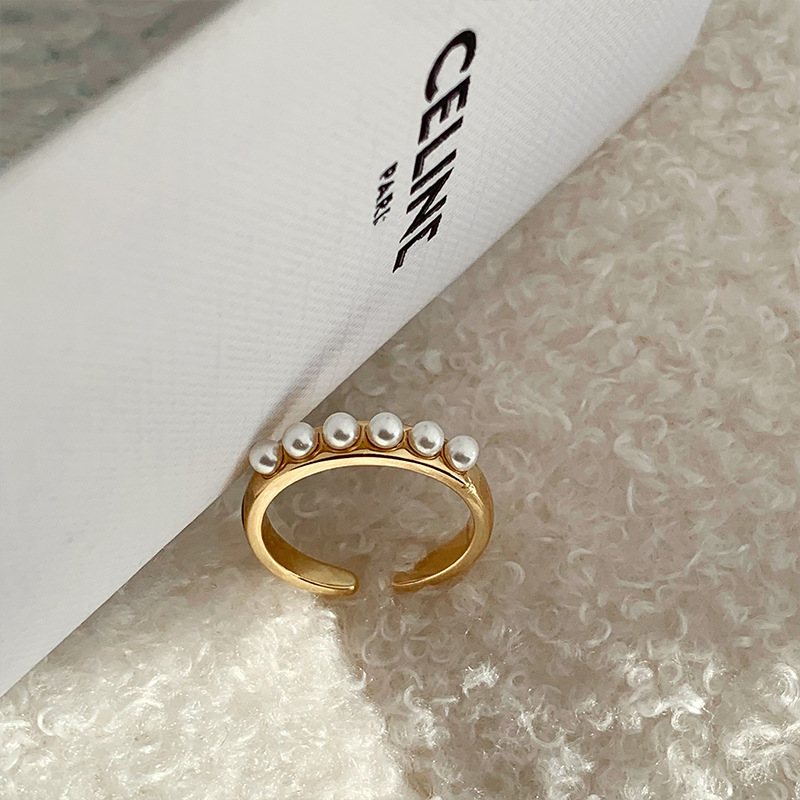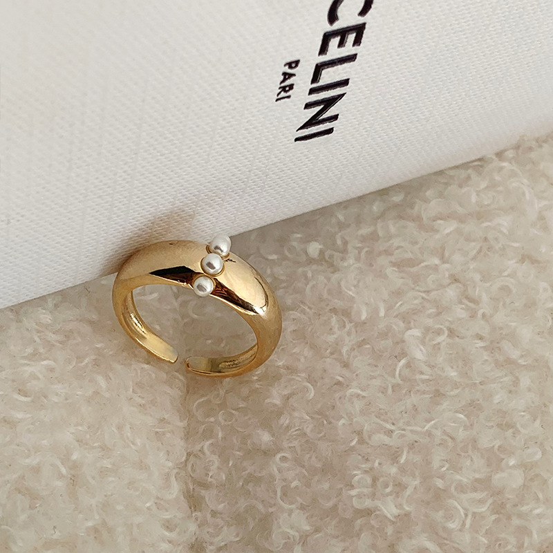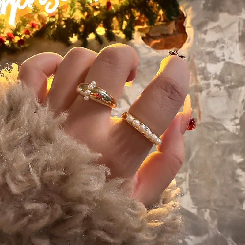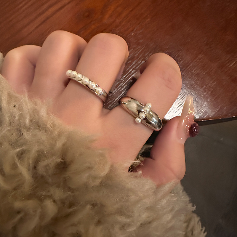 小众设计感冷淡风珍珠金属戒指法式复古简约气质百搭开口食指指环