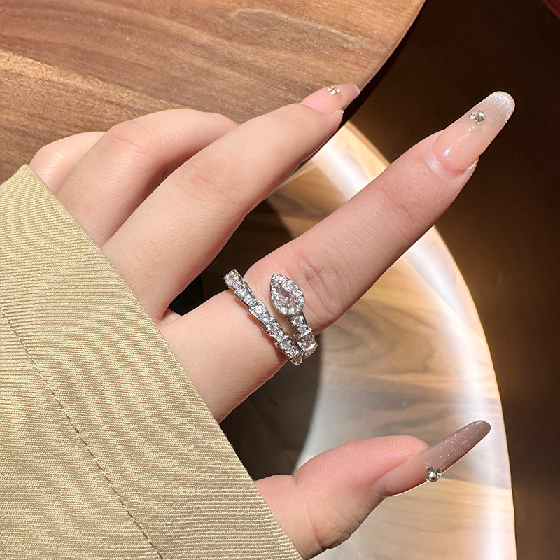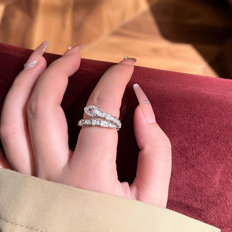 小众轻奢闪钻灵蛇戒指高级感气质百搭开口食指指环冷淡风蛇形配饰