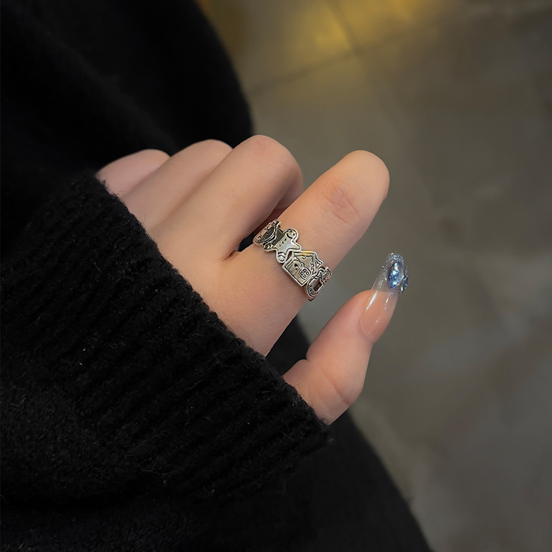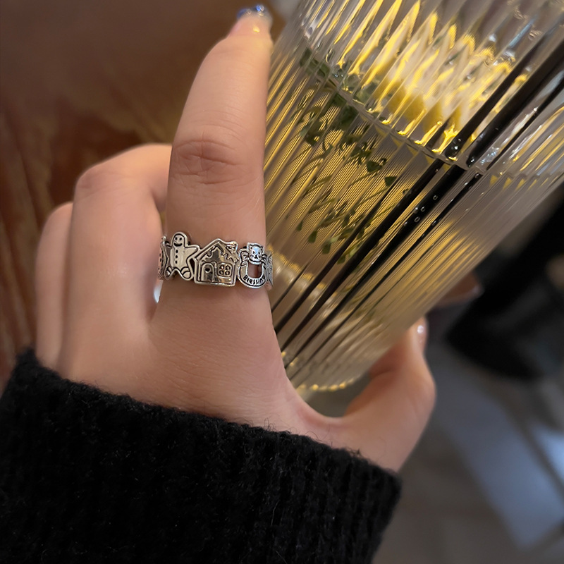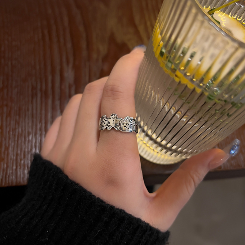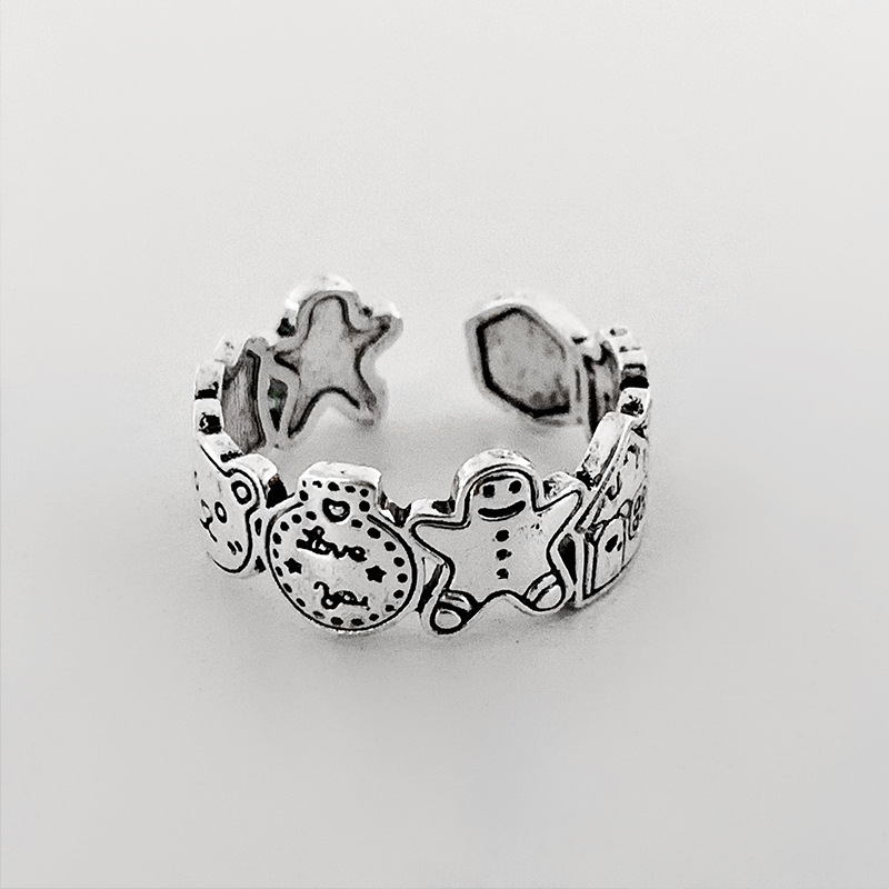 圣诞复古个性涂鸦姜饼人雪人戒指 ins潮可爱开口可调节金属食指环