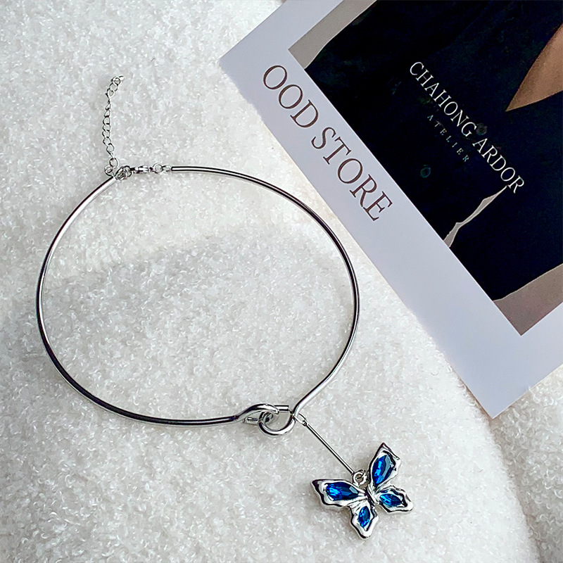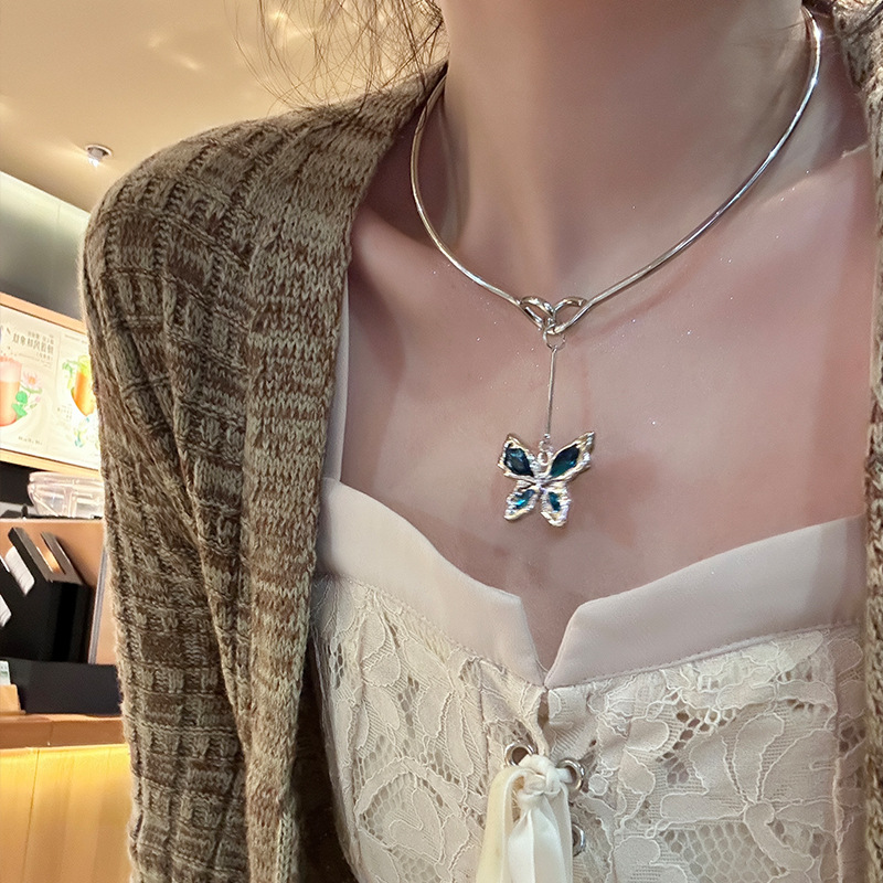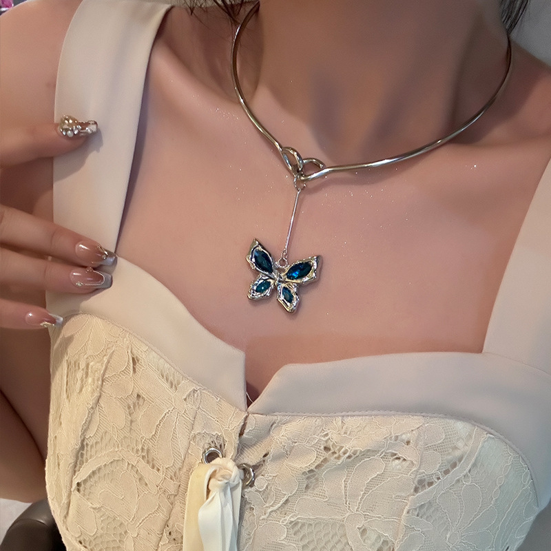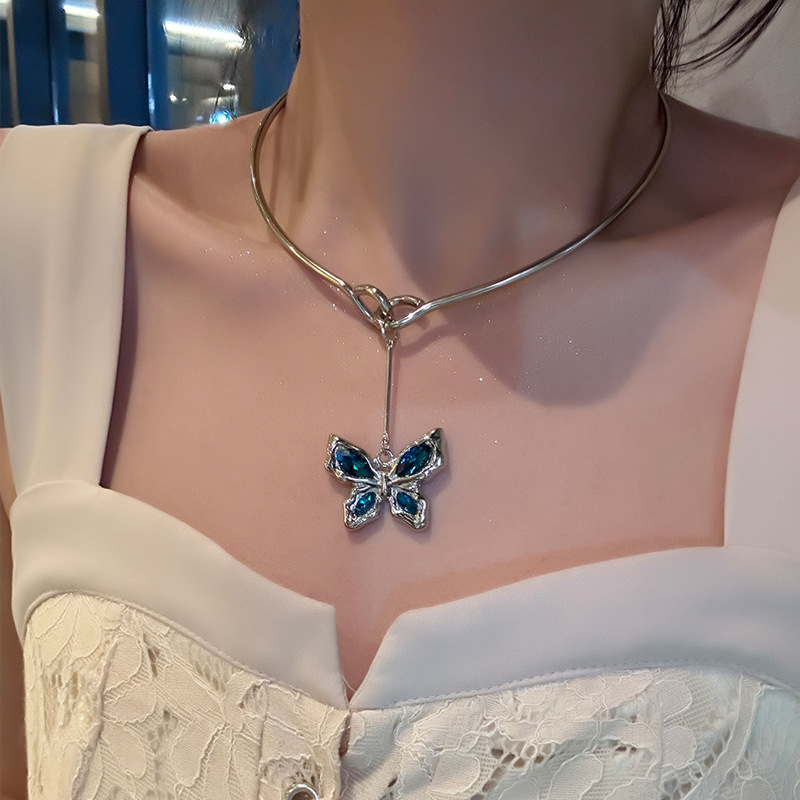 甜酷风蓝水晶蝴蝶项圈女高级感个性y2k项链ins独特choker锁骨链潮