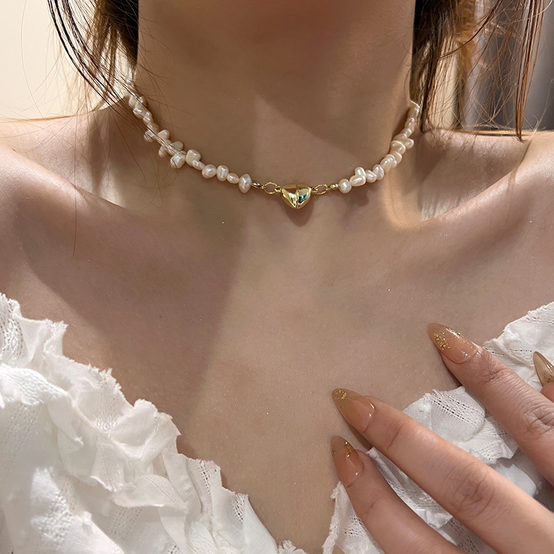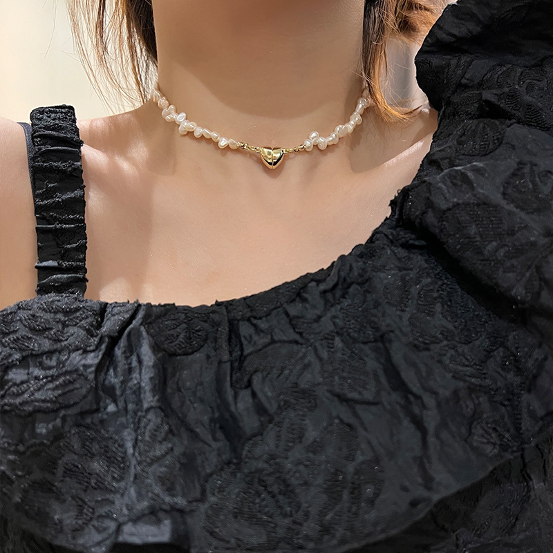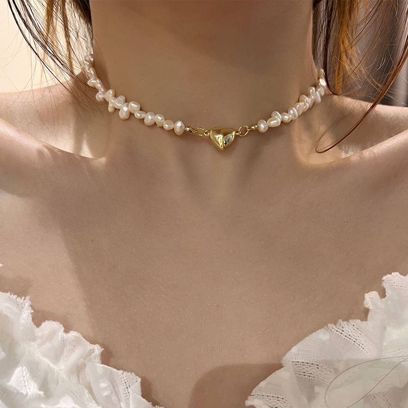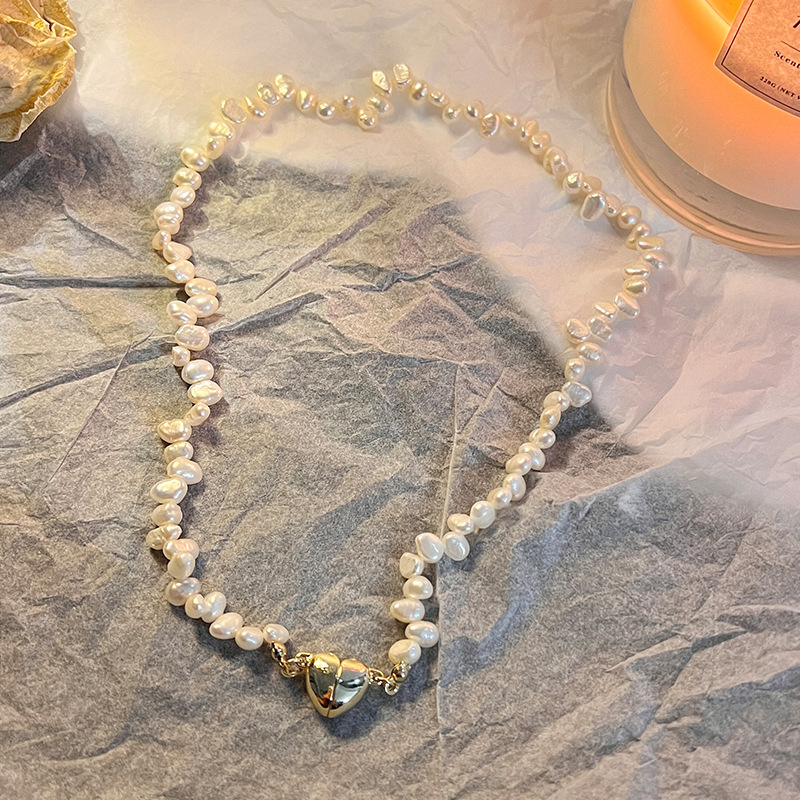 爱心磁吸扣天然异形珍珠项链小众设计感轻奢颈链新款锁骨链