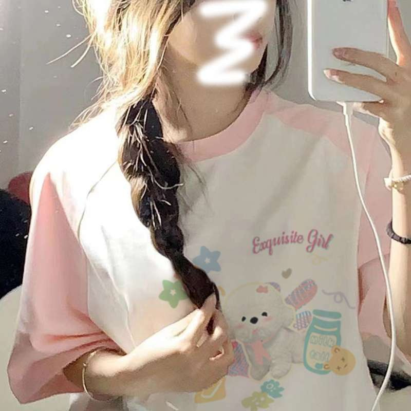 美式复古纯棉插肩短袖t恤女夏季粉色潮牌胖妹妹mm半袖百搭ins上衣