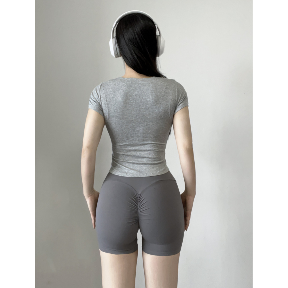双头拉链细螺纹显瘦透气轻薄跑步运动瑜伽运动修身短袖T恤