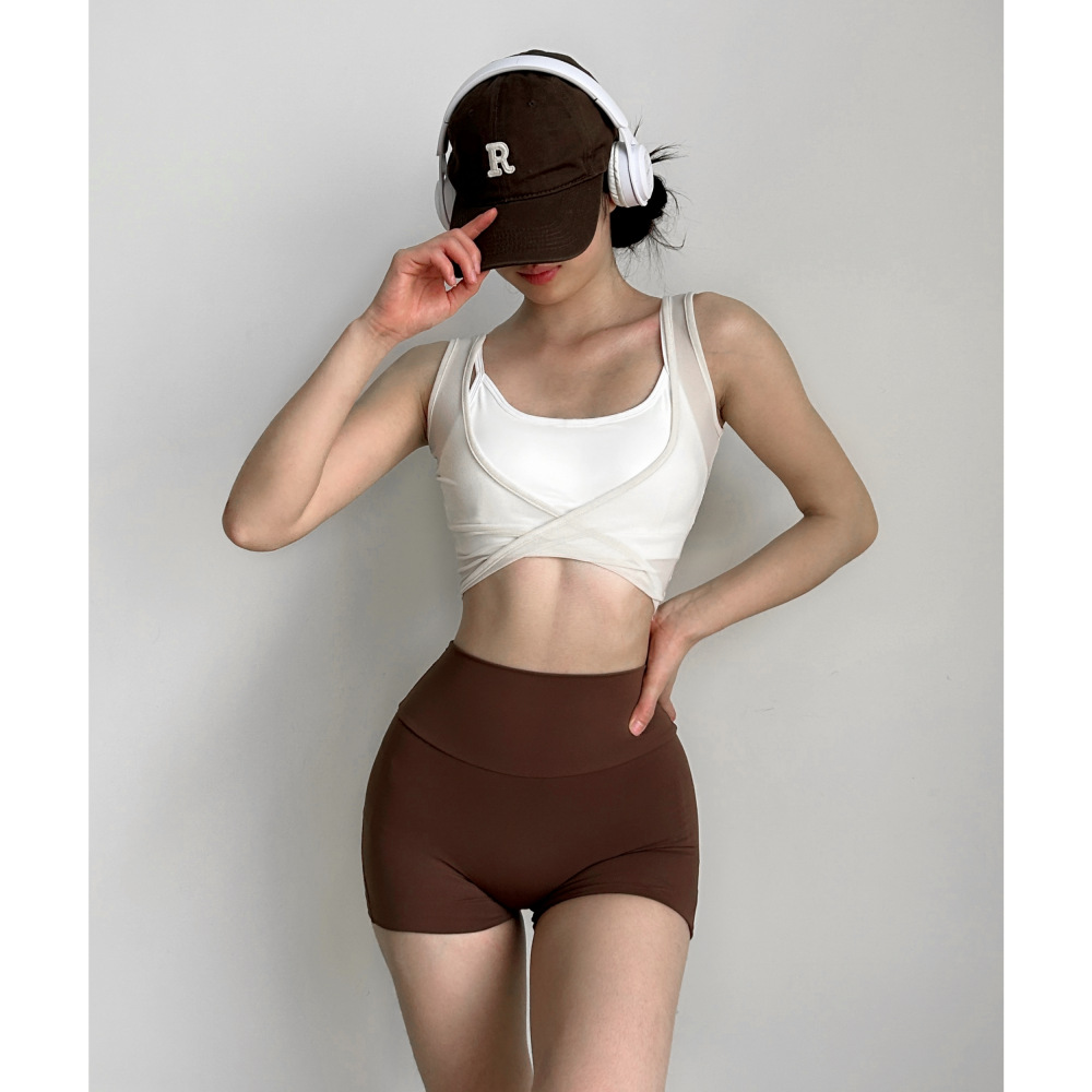 两穿网纱运动背心跑步薄款性感半透无袖瑜伽健身T恤上衣透气