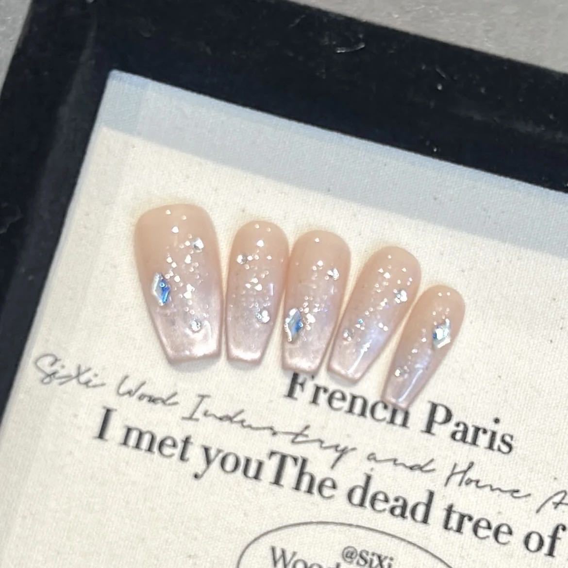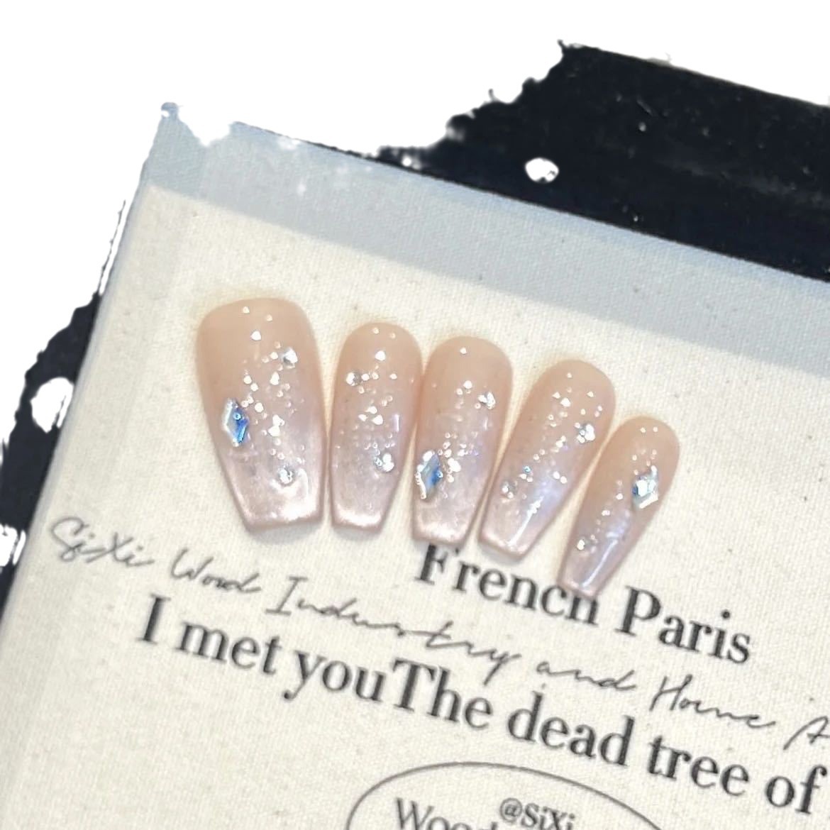 纯手工光疗穿戴甲晨雾玫瑰批发成品重复使用美甲贴片可拆卸猫